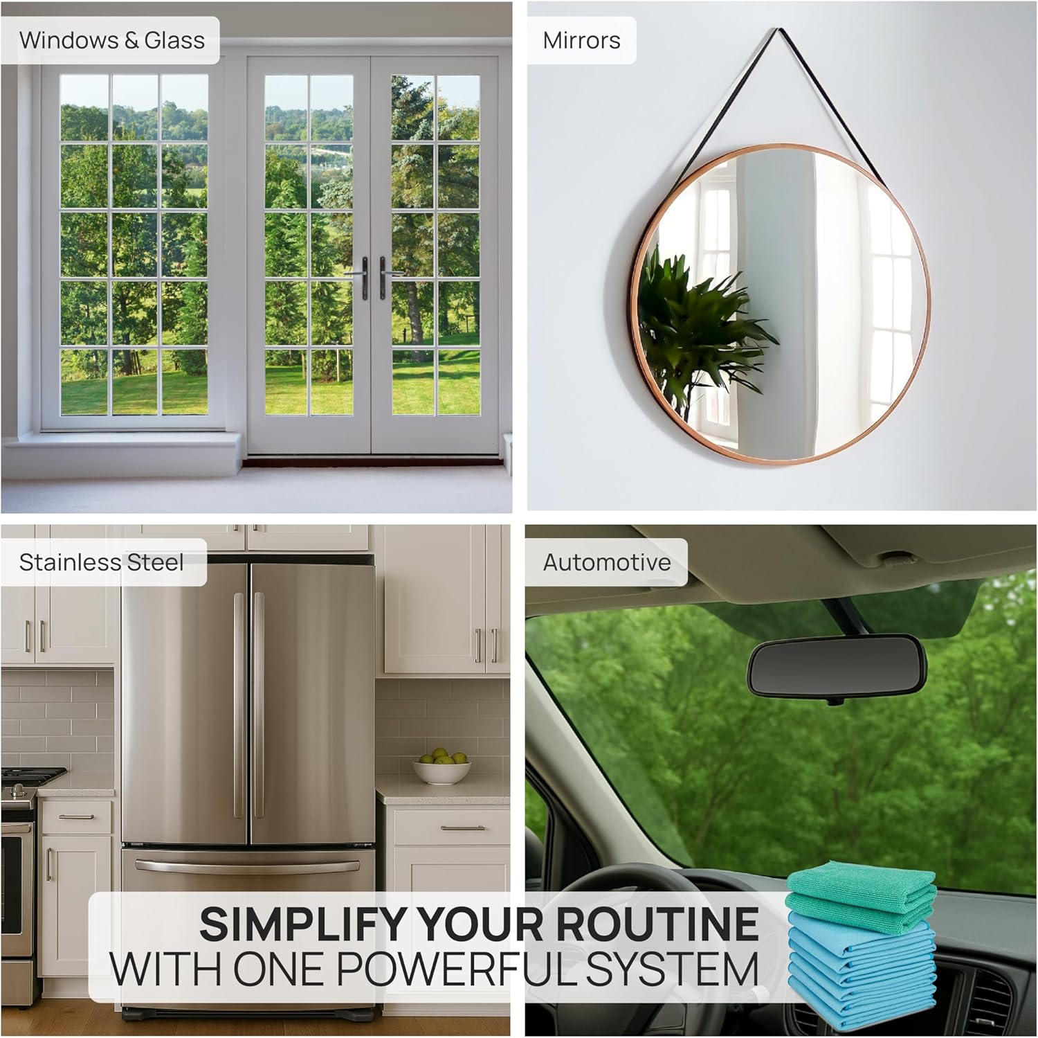 - 2-Step Streak-Free Glass Cleaner System - Achieve a perfect finish with the Claro 2-cloth process: Use the damp green cloth to remove grime, then follow up with the dry blue microfiber cleaning cloth.