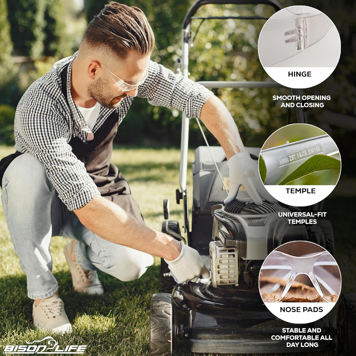 BISON LIFE Safety Glasses - Scratch Resistant Wrap Around Eyewear, Polycarbonate ANSI Z87.1 Impact Resistant Lens