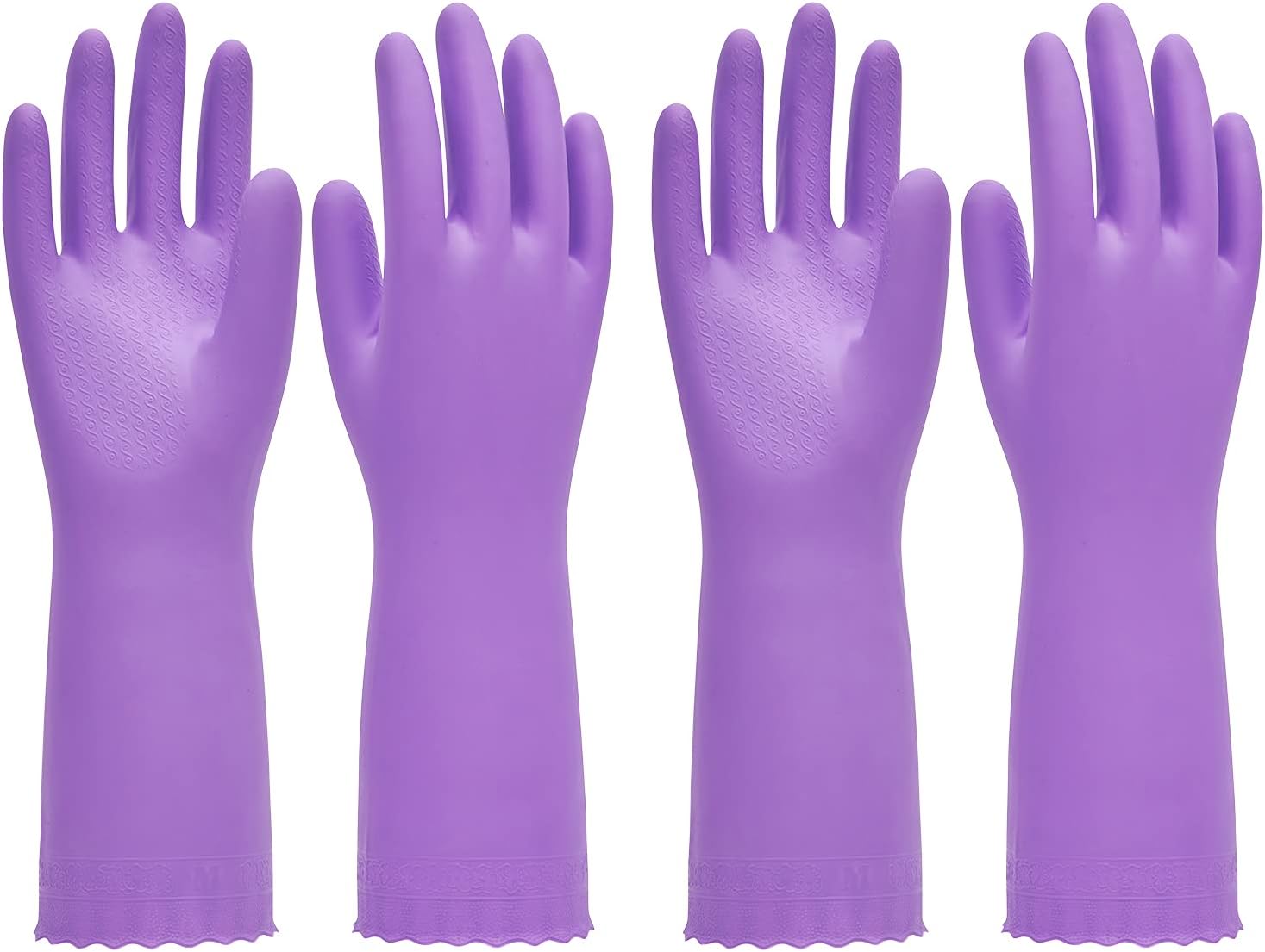 PACIFIC PPE 2 Pairs Reusable Dishwashing Cleaning Gloves with Latex Free, Cotton Lining, Kitchen Gloves, Purple, Large