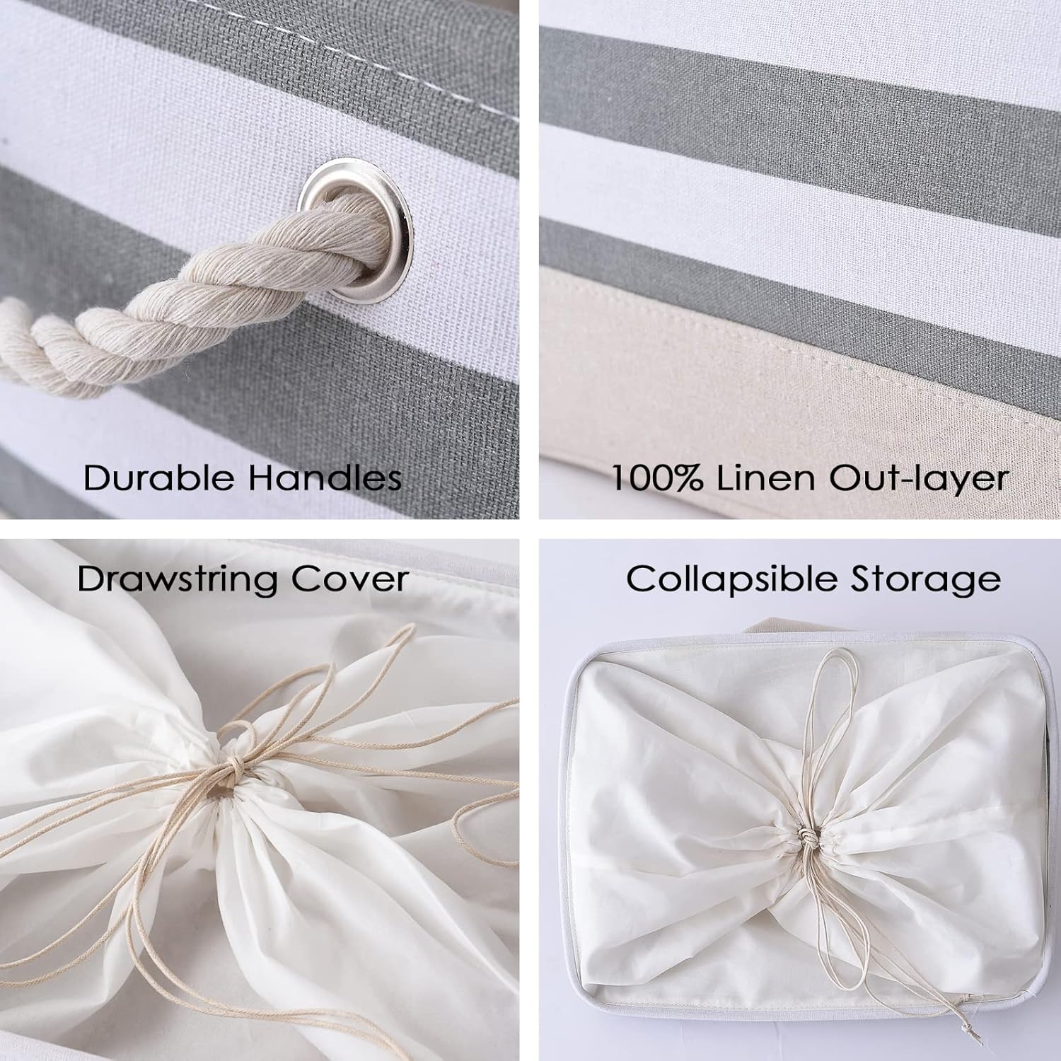 - 【& STURDY】: This fabric baskets outside fabric is made of linen &thicken Environmental EVA,and used a lining material for the inside. Sturdy metal rod frame around the top keep the basket shape. Strong seams and rope side handles, make this storage basket are sturdy and easy to grab. Stand up great on their own even unfilled and ensure a greater product lifespan.