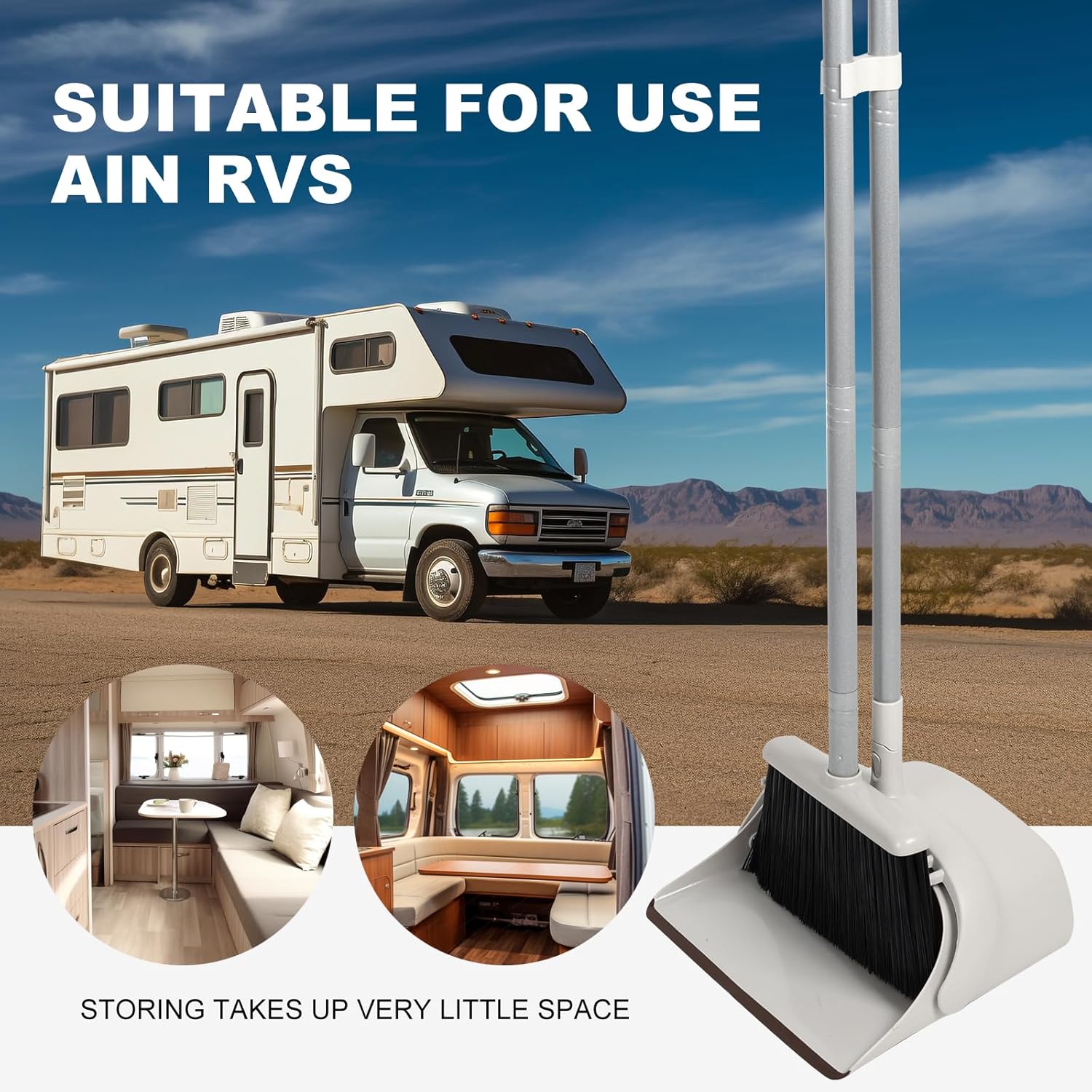 - Multipurpose Use: The broom and dustpan set is not only suitable for cleaning floors, but also for cleaning kitchens, bathrooms, garages, dorm, RVs and other places.