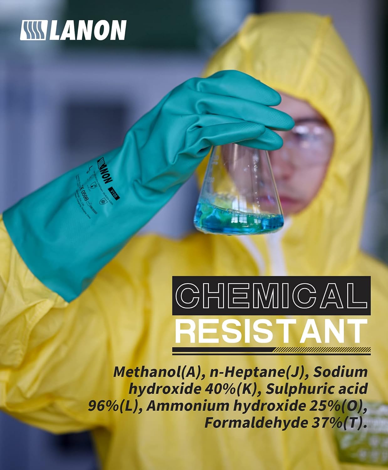 LANON 3 Pairs Nitrile Chemical Resistant Gloves, Reusable Heavy-Duty Rubber Gloves, Acid, Alkali & Oil Protection, Non-Slip, XL