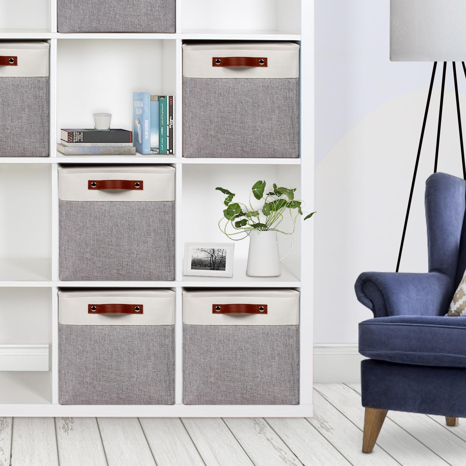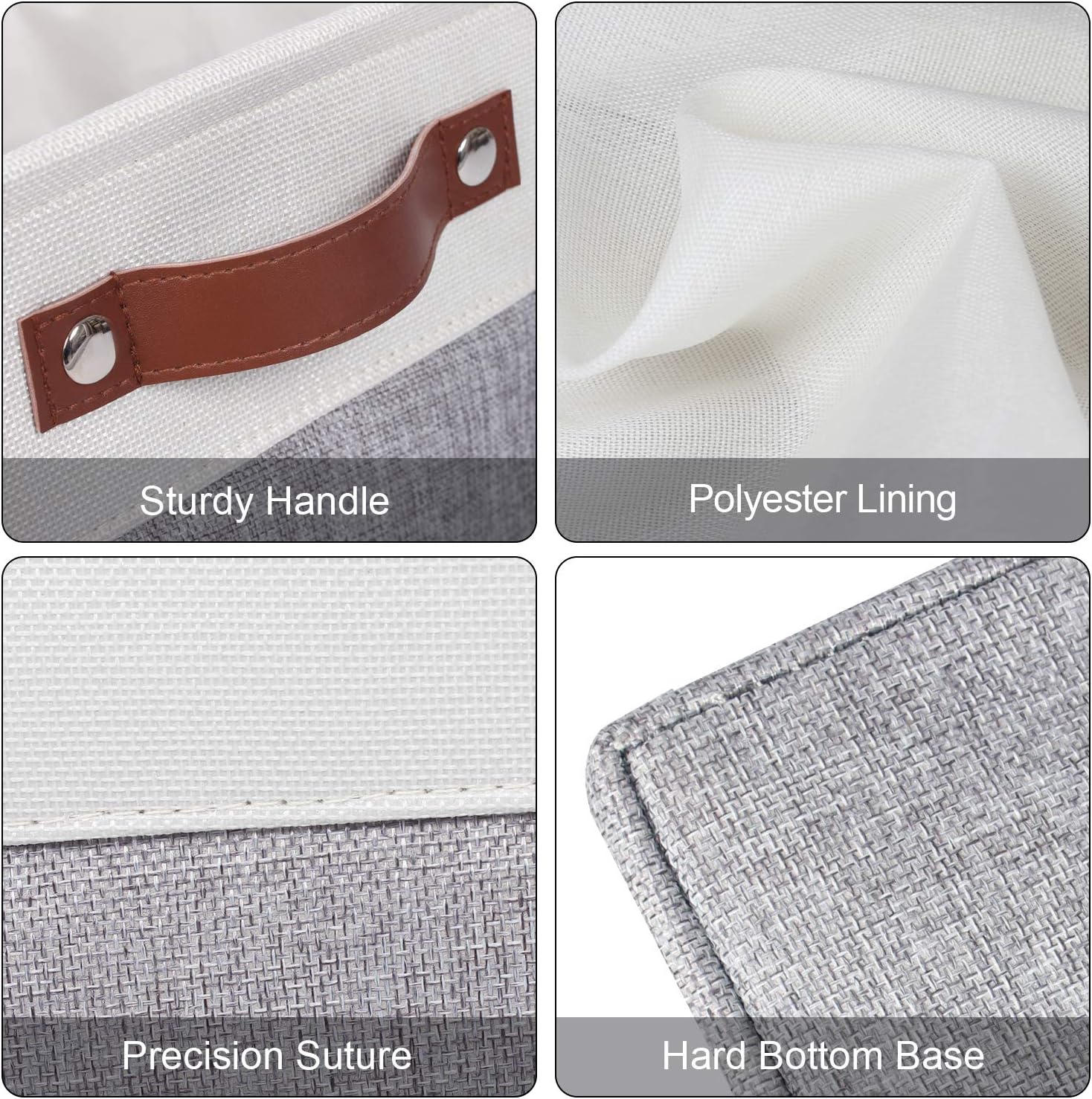 - 【Storage Baskets for Shelves】Upgraded version storage organizer bins specially add the hard cardboard on bottom to avoid the basket deform when you use.Retain the bottom a flat shape,More sturdy and durable.Together with the leather handles on both sides, it is easy to pull in or out from shelves and closet.