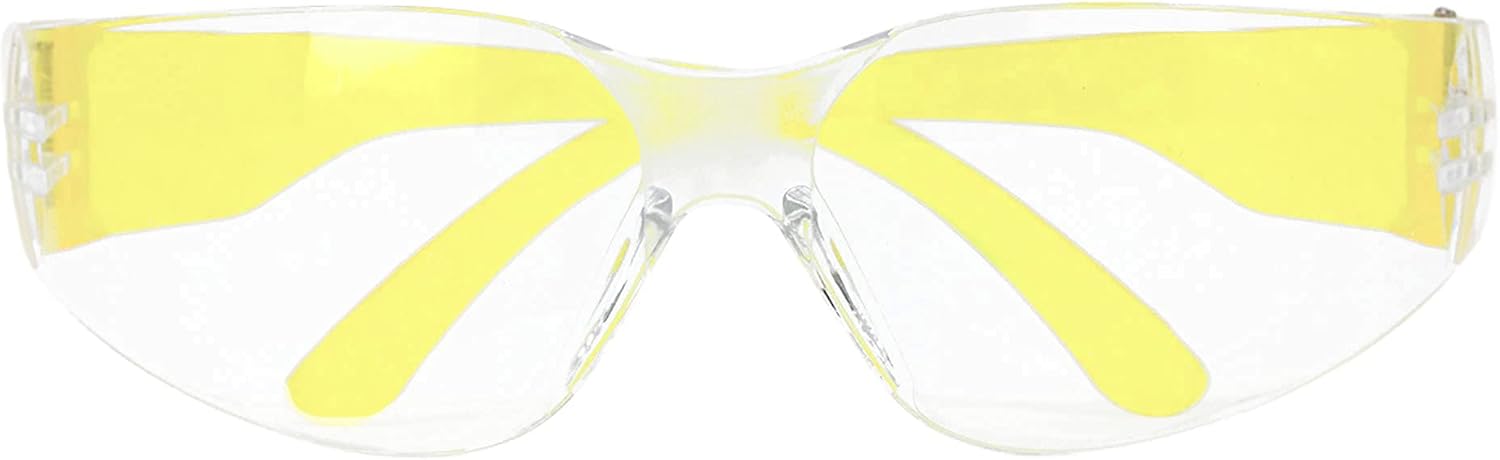 - Color & One Size Fits Most – Fits adults, teens, and older children. 12 piece pack of yellow safety glasses. Usage can include, but is not limited to: Medical, Industrial, Dental, Construction, Janitorial, School, Daycare, College, etc.