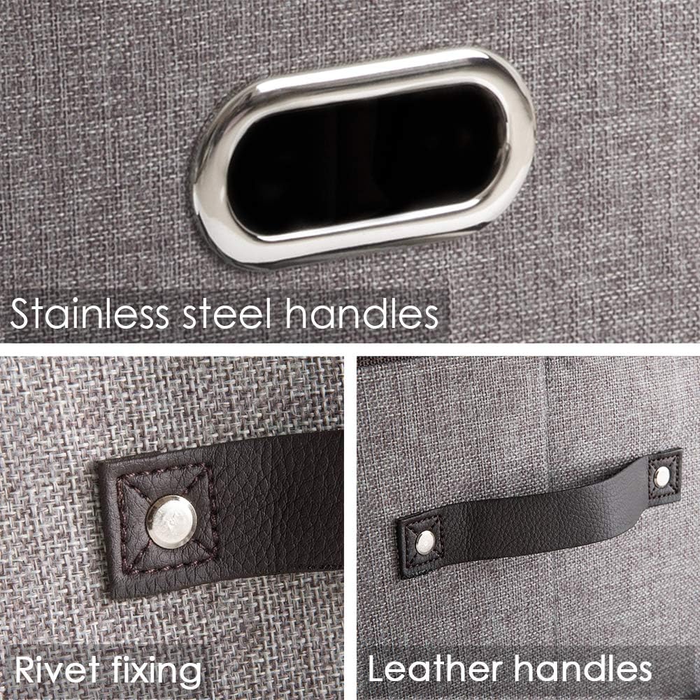 PRANDOM Fodable Storage Bins for Closet [3-pack] Decorative Fabric Storage Baskets Cubes with Leather/Metal Handles for Shelves Bedroom Living Room Grey (11.5x8.5x6.7 Inch)
