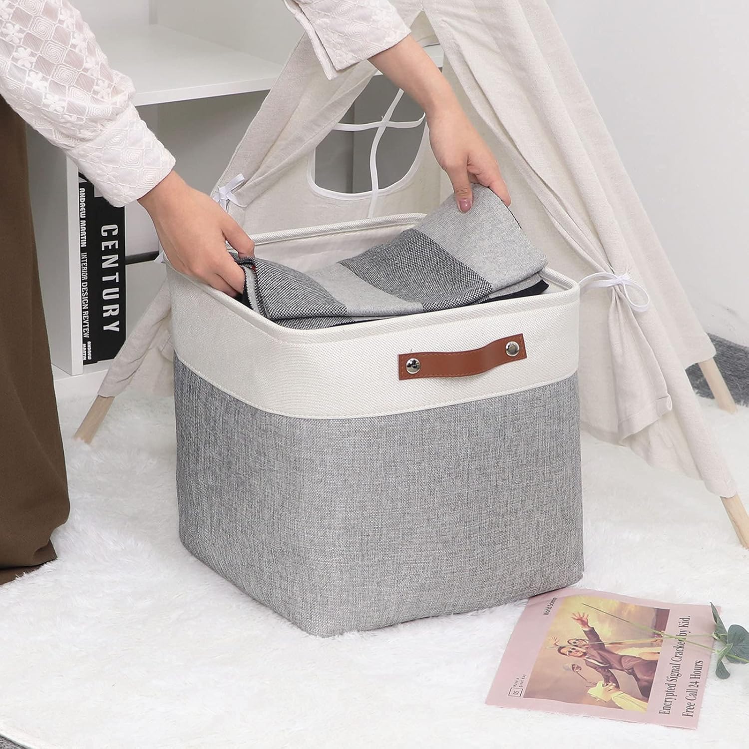 DULLEMELO Cube Basket for Storage, Collapsible Fabric Cube for Organizing, Storage Cube for Closet, Laundry, Nursery, Shelves, Decorative Basket for Gifts Empty (White&Gray)