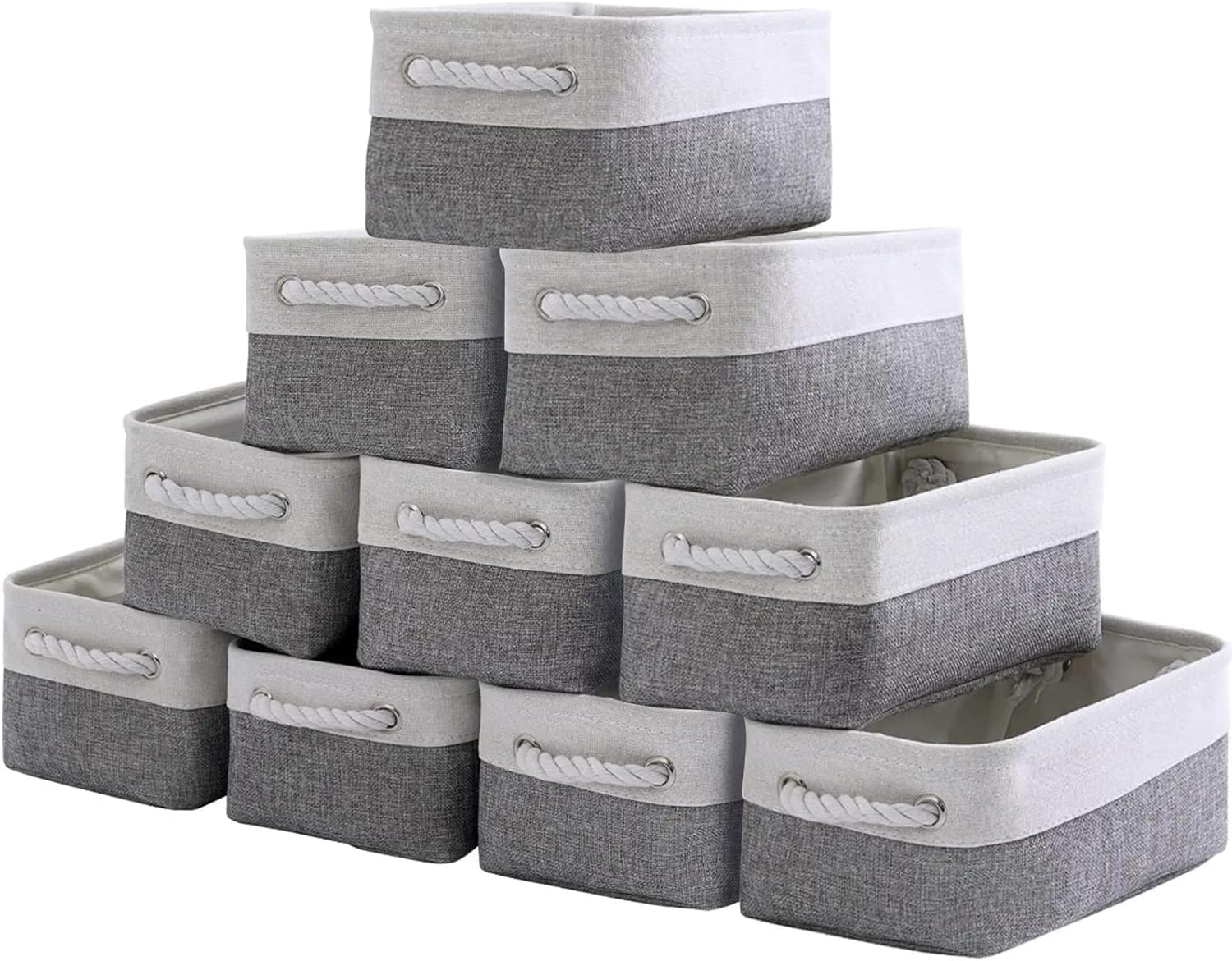 - It includes 10 pack small storage baskets. Sophisticated and practical. Used as closet organization bins, room storage boxes, living room, laundry organizing, basement, cat & dog supplies holder, nursery, clothes basket, , garage storage, book and magazine organizer, makeup basket, bathroom towel and toilet storage, shelf fabric drawers and many other uses