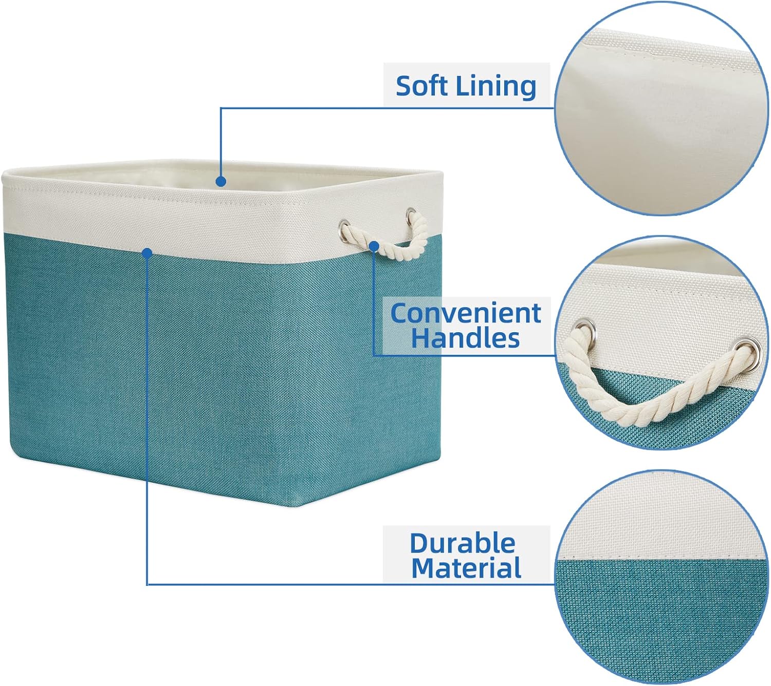 Temary Fabric Baskets Storage Baskets for Organizing 2 Pcs Decorative Baskets for Gifts Empty Collapsible Storage Bins for Home Closet(White&Teal,16Lx12Wx12H Inches)