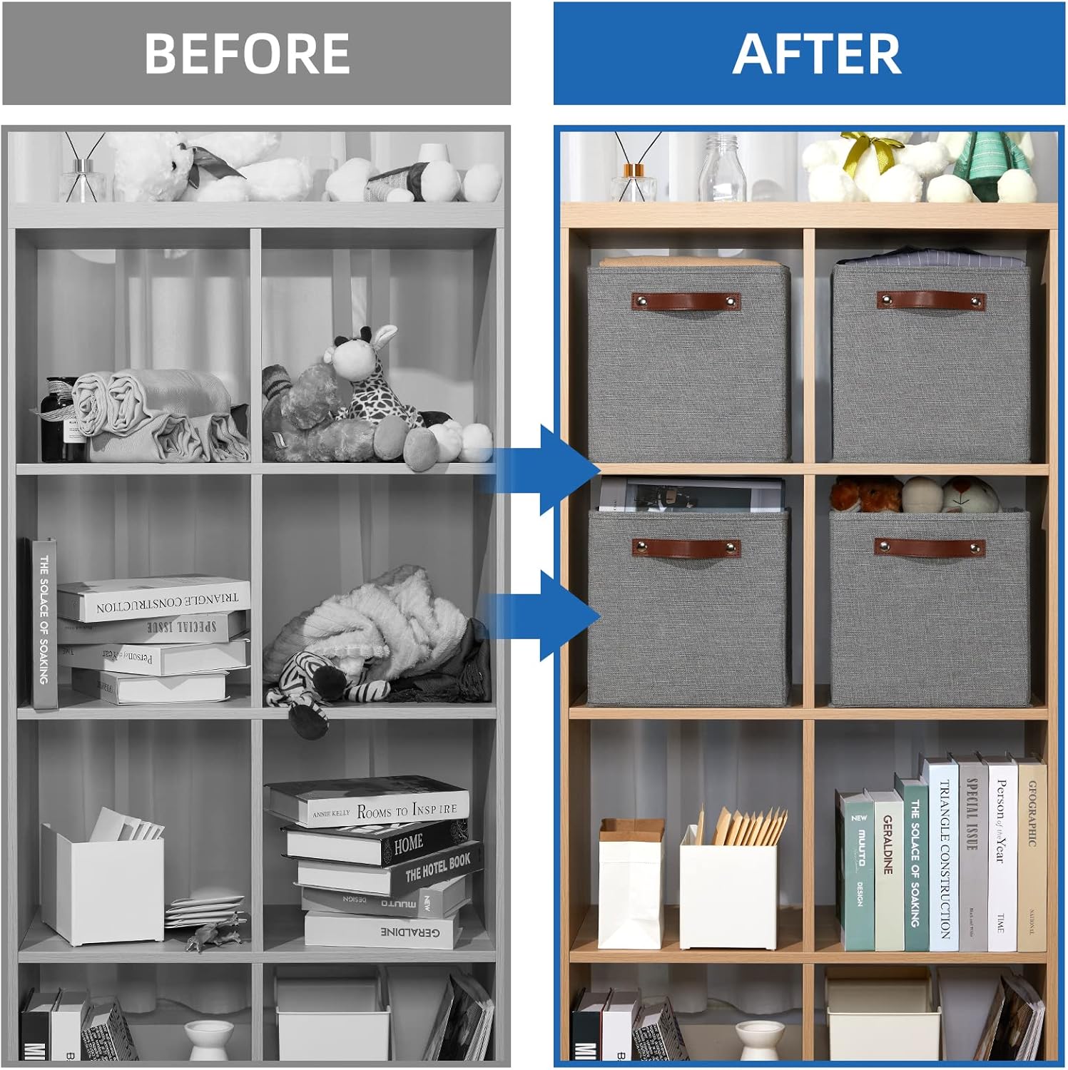 - PRACTICAL STORAGE BINS: These fabric storage cubes are an excellent choice for keeping your space nice, tidy, and organized. fabric bins for cubes ideal for living room, bedroom, utility room, room, craft room, playroom, closet, dorms, condos, laundry room, toilet, or even in the hallway. The 11 inch cube bin set provides a perfect, lightweight way to accessorize, organize