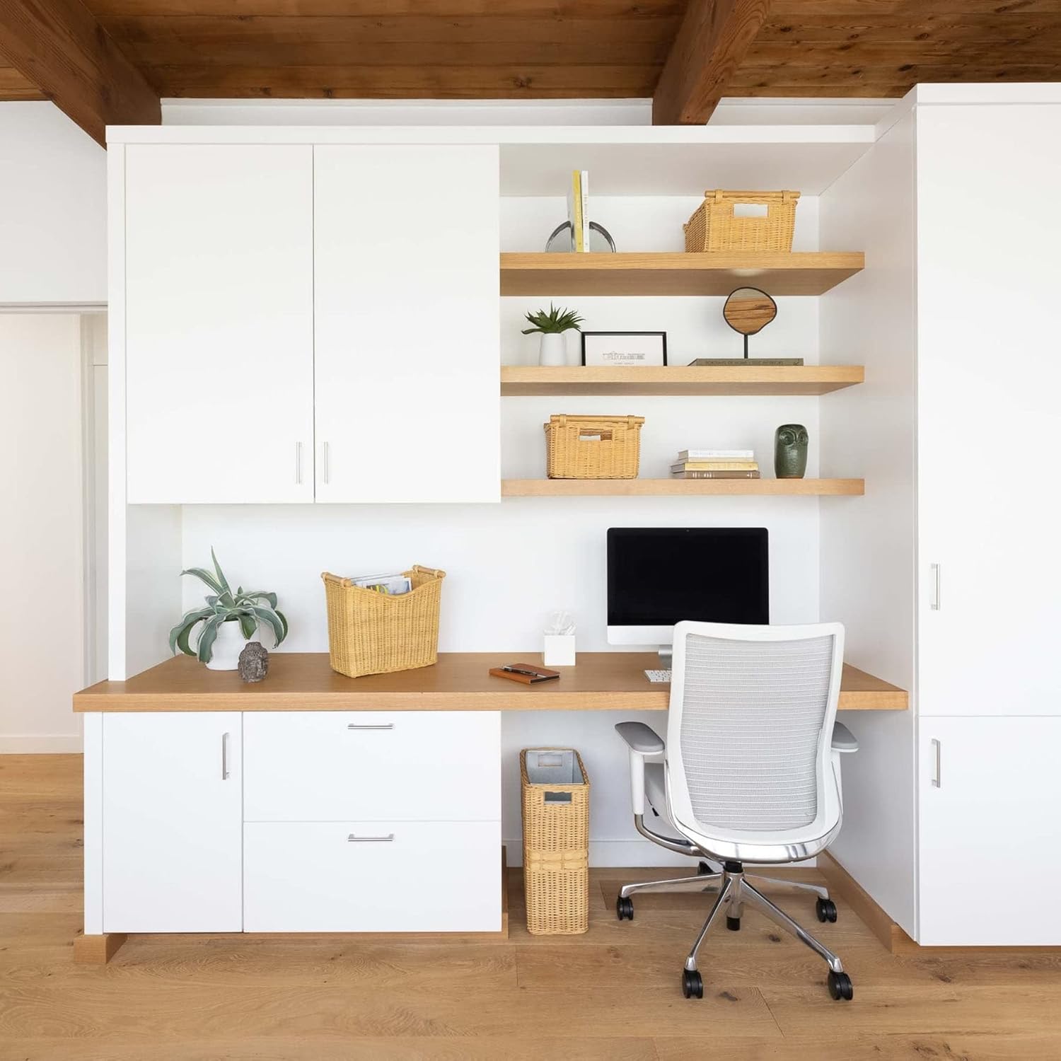 - Shelf storage baskets are handcrafted by artisans in Indonesia and made of natural rattan.