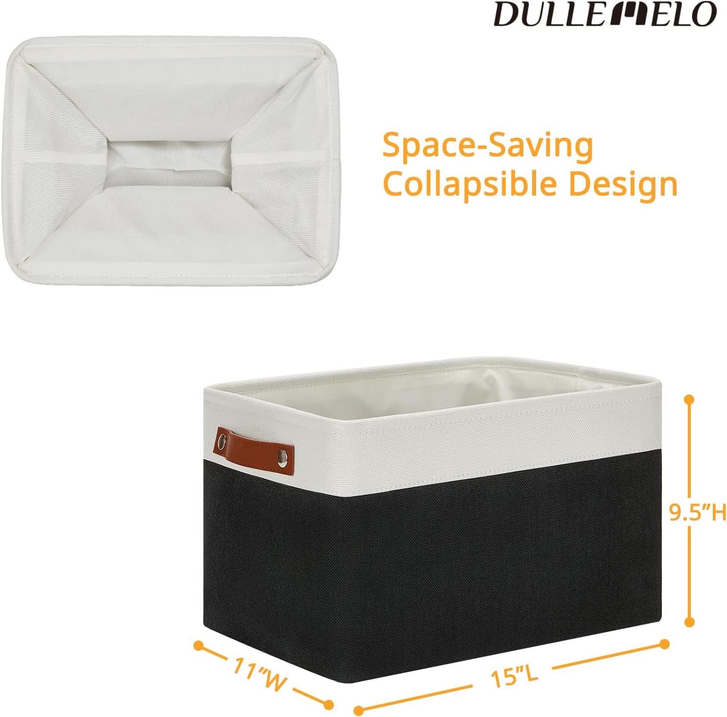 DULLEMELO Linen Closet Organizer and Storage Basket for Office, Bedroom, Cloth, Baskets for Organizing and Storage with handles for Shelves,Closet,Gift,Toys(White&Black)