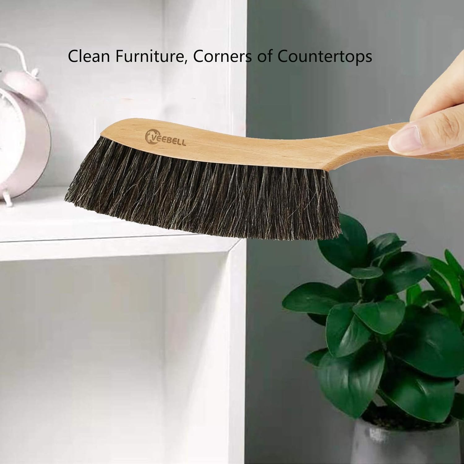 Horse Hair Brush Hand Broom Dusting Brush for Home Cleaning, Wood Handle Soft Brush Duster for Counter Furniture, Bed, Bench Fireplace,Car, Shop Brush Cleaning 14" Long