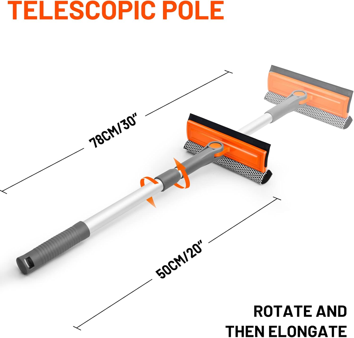 eazer Professional Window Squeegee, 2-in-1 Rotatable Squeegee for Window Cleaning Kit, Window Cleaner Tool, Window Washing Equipment Kit with Extension Pole (20''-30'') for Shower/Windshield - 2 Head