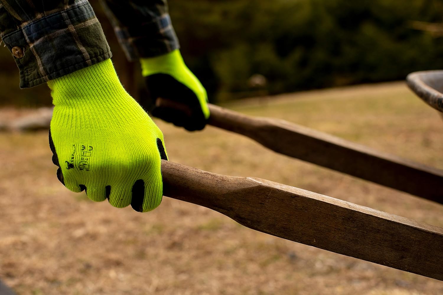 G & F Products G & F 1516 12 Pairs Pack Premium High Visibility Work and gardening Gloves for Men and Women. MicroFoam Textured Coated Palm and Fingers Gloves for Gardening Work, Size Small, Green