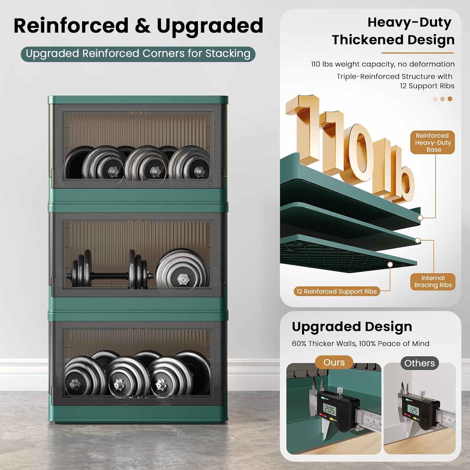 - Quick Assemble & Fold: Our storage containers can be assembled in 1 minute and folds down to 4 inches when not in use, easily tucking under beds/tight spaces—saves 80% of space. Heavy-duty PP plastic (2mm thick walls) supports 110 lbs (50 kg)/pack