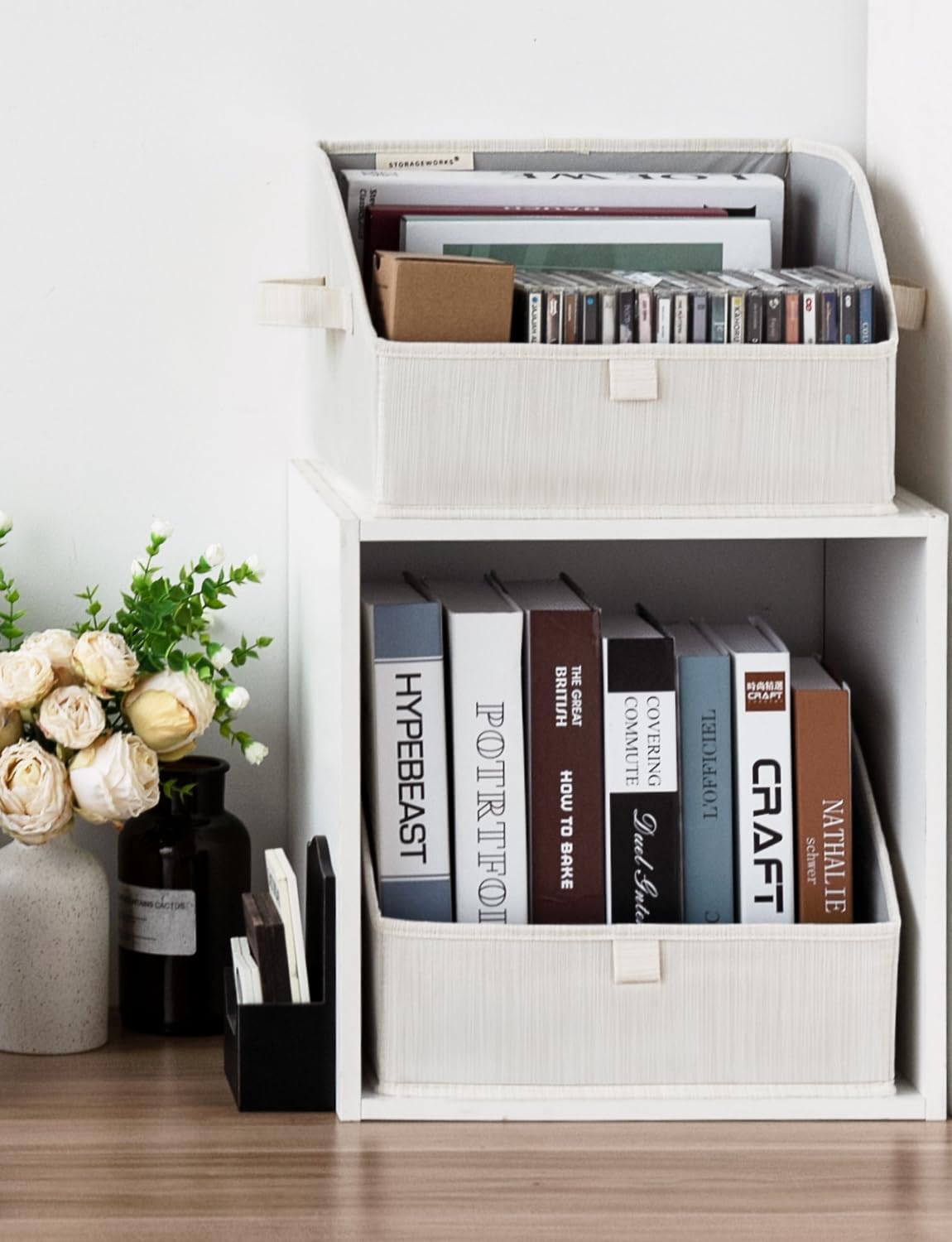 - Open-front closet bins ideal for storing snacks, underwear, socks, toys, books, DVDs, and office & crafts supplies on the shelves, inside closets, in the wardrobe, at the corners, or under the end table.