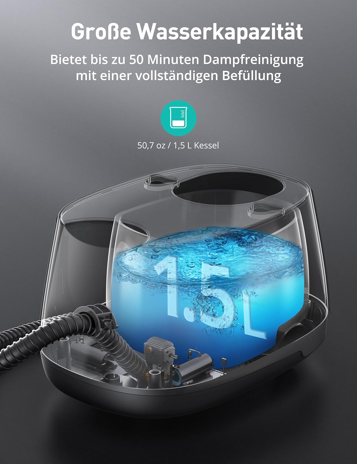 • 【Large Capacity】 Designed with a 50.7oz large capacity water tank, this steam cleaner for car with a 16ft long power cord provides up to 50 minutes steaming time, which is ideal for whole-home cleaning without interruption