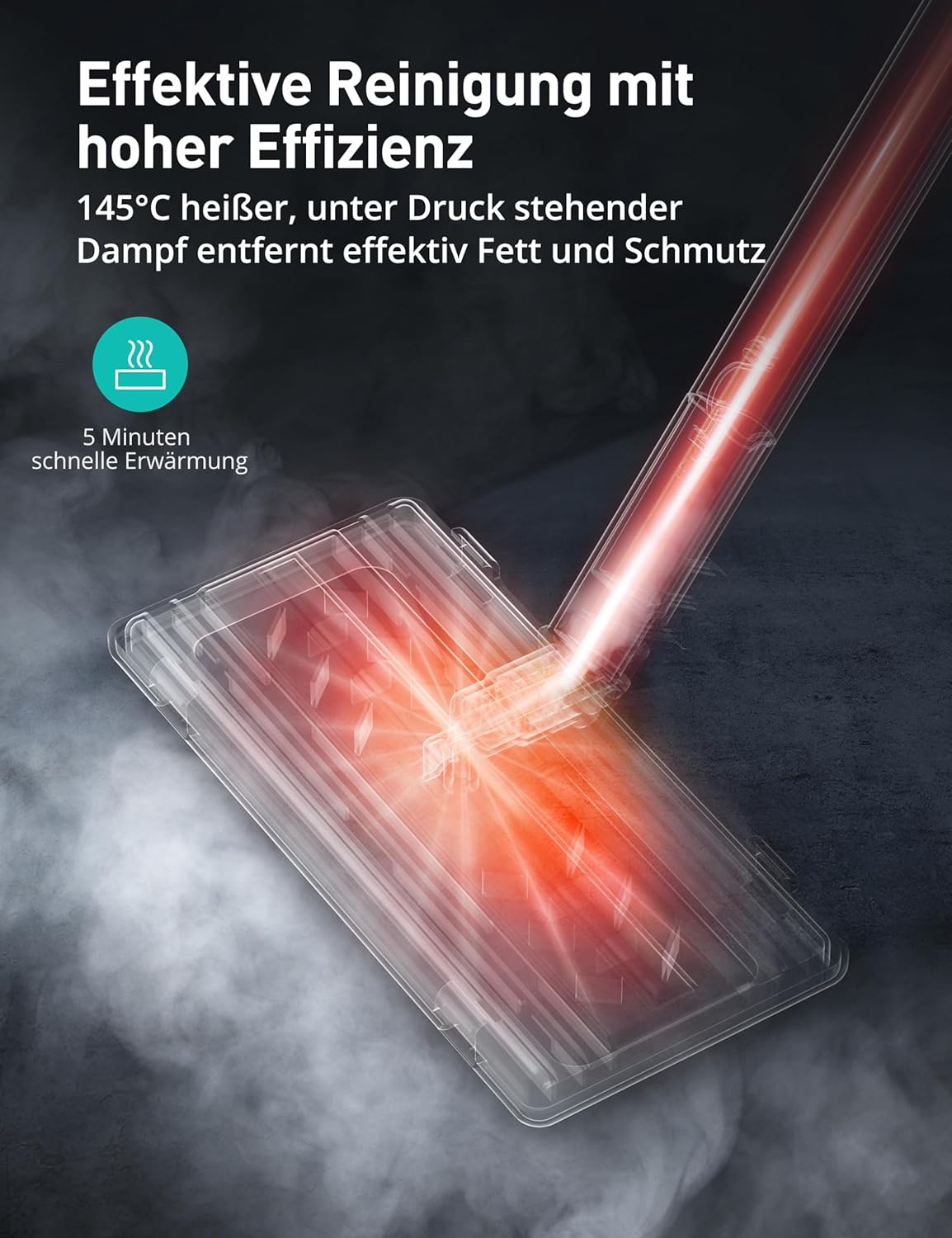 • 【Covering a Diameter Range of 11M】 Aspiron Steamer for Cleaning Have 5M power cord + 1.5M cleaning hose + 1M extension rod, which can cover the living environment within a diameter of 11M and clean the whole house