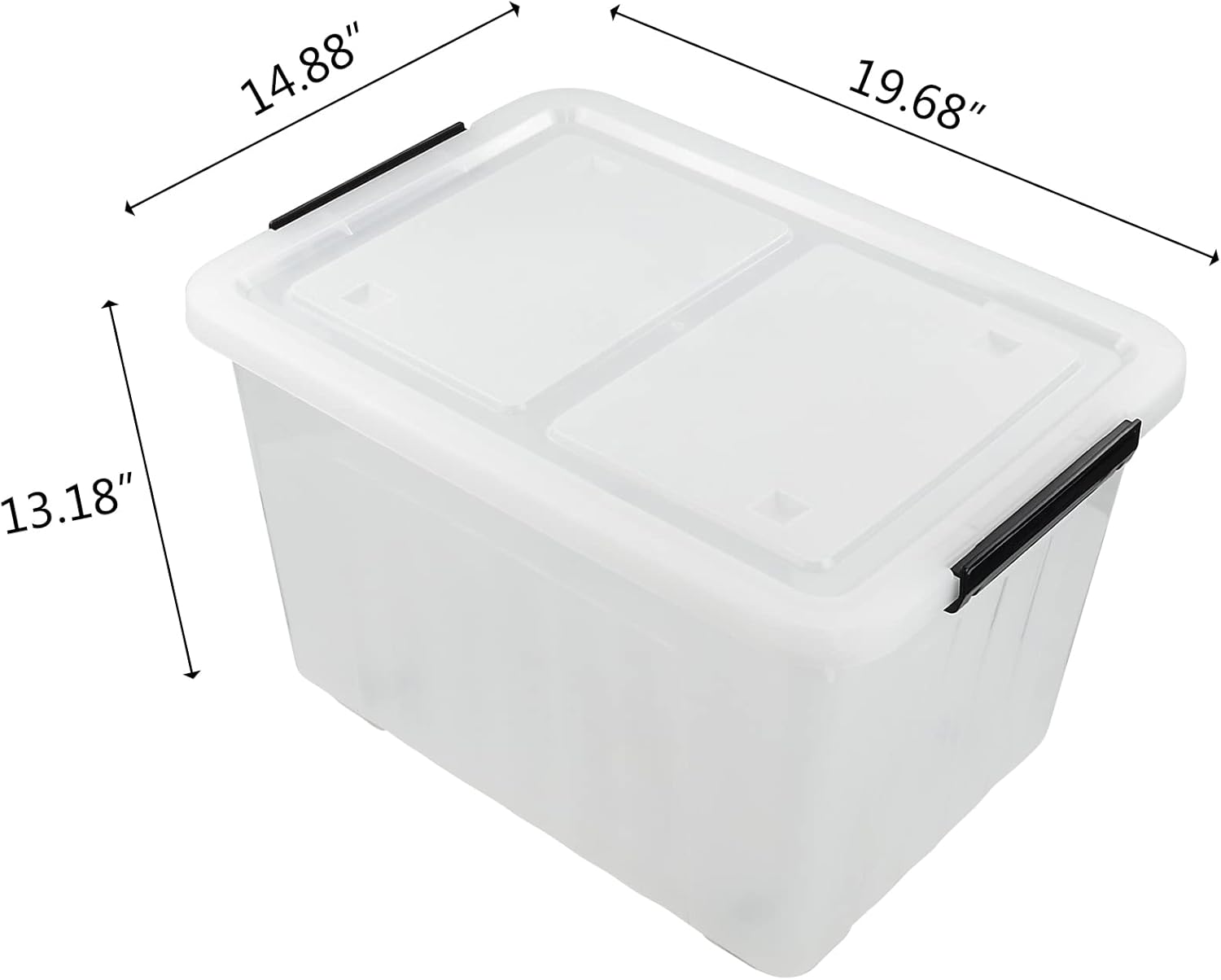 Bringer 4-Pack Large Clear Plastic Storage Box with Lid, 50 L Wheeled Clear Storage Boxes