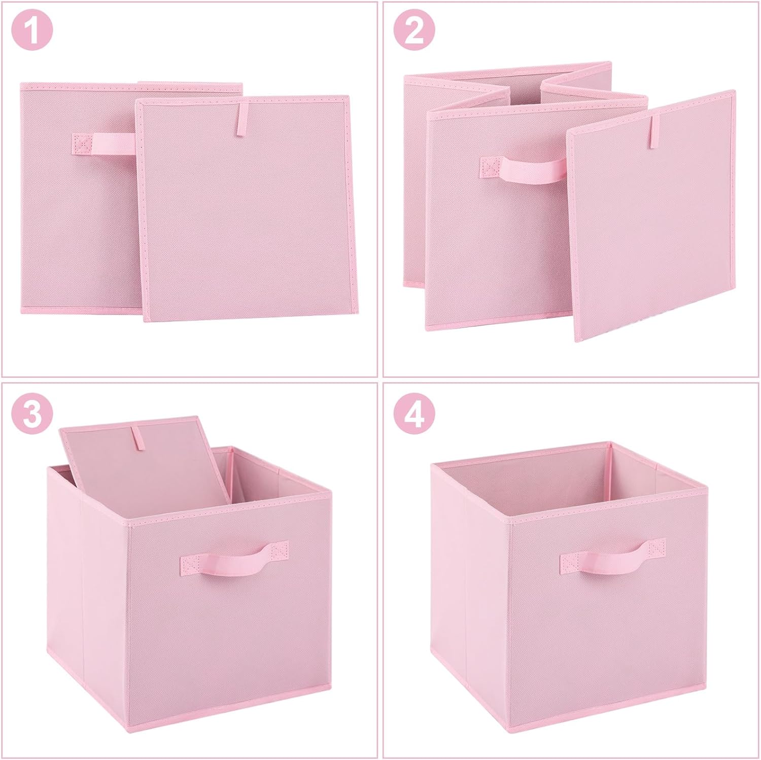- Perfect Storage Solution: 6-piece set, pink Collapsible cube storage bin, Provides an attractive, lightweight solution to many storage needs, making your room decor very pretty while keeping your household items neat and organized.