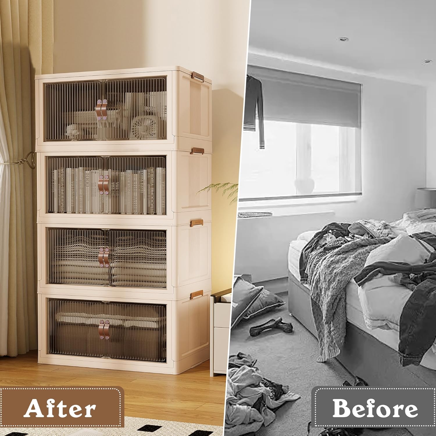 SAILUN 109Gal/434Qt Stackable Storage Bins Folding Collapsible Storage Bins with Lid, Closet Organizers and Storage Box Beige 26" W x 17" D x 56.7" H
