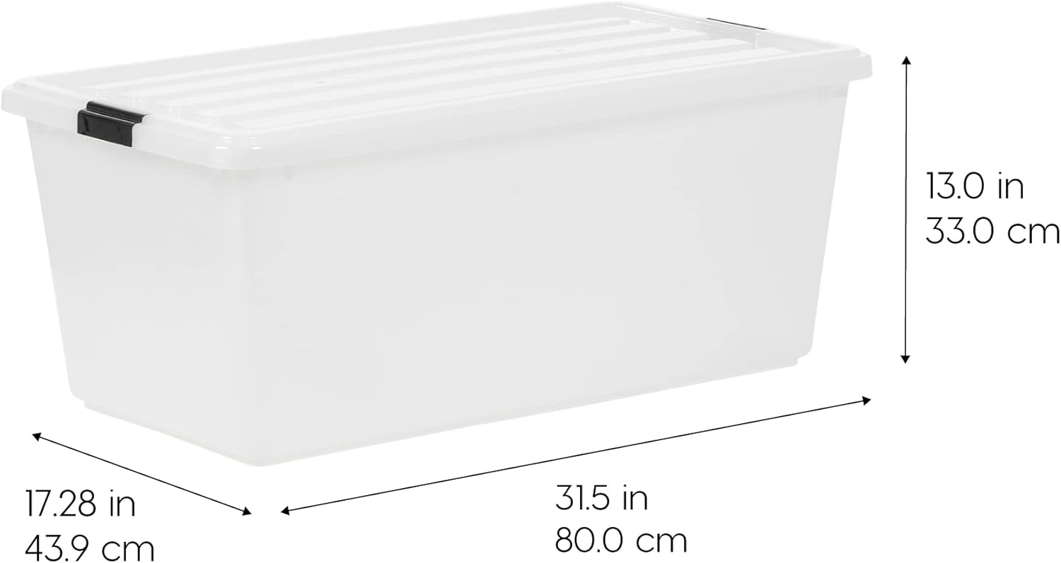 IRIS USA 91 Qt Stackable Plastic Storage Bins with Lids, 4 Pack - BPA-Free, Discreet Organizing Solution, Latches, Durable Nestable Containers, Secure Pull Handle, Made in USA - Pearl