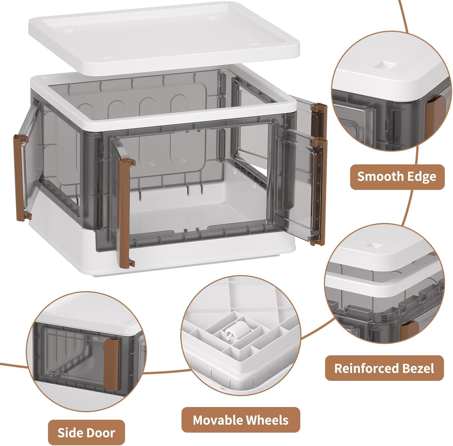 HAIXIN Folding Storage Bins with Left Doors and Right Doors Opening, 6.86 Gal Bookcase, Stackable Storage Cabinet, Plastic Shelves Organizer, Space-Saver Pantry Storage, Room Organization, 6 Pack