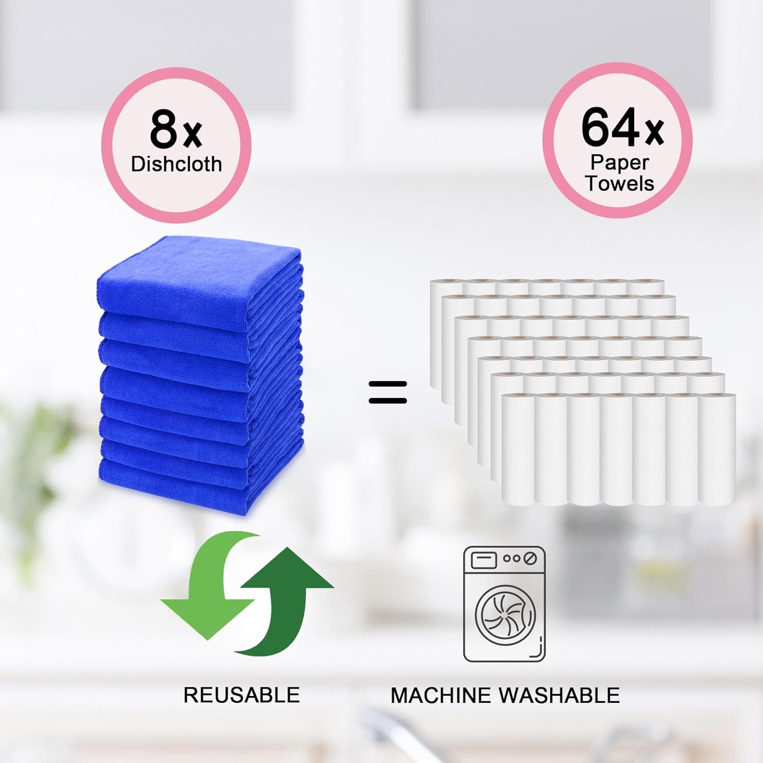 kimteny 13x28 Inches Kitchen Cloth Dish Towels, 400 GSM Premium Dishcloths, Super Absorbent Coral Velvet Microfiber Cleaning Cloths, Fast Drying Rags for Washing Dishes (8 Pack, Blue)