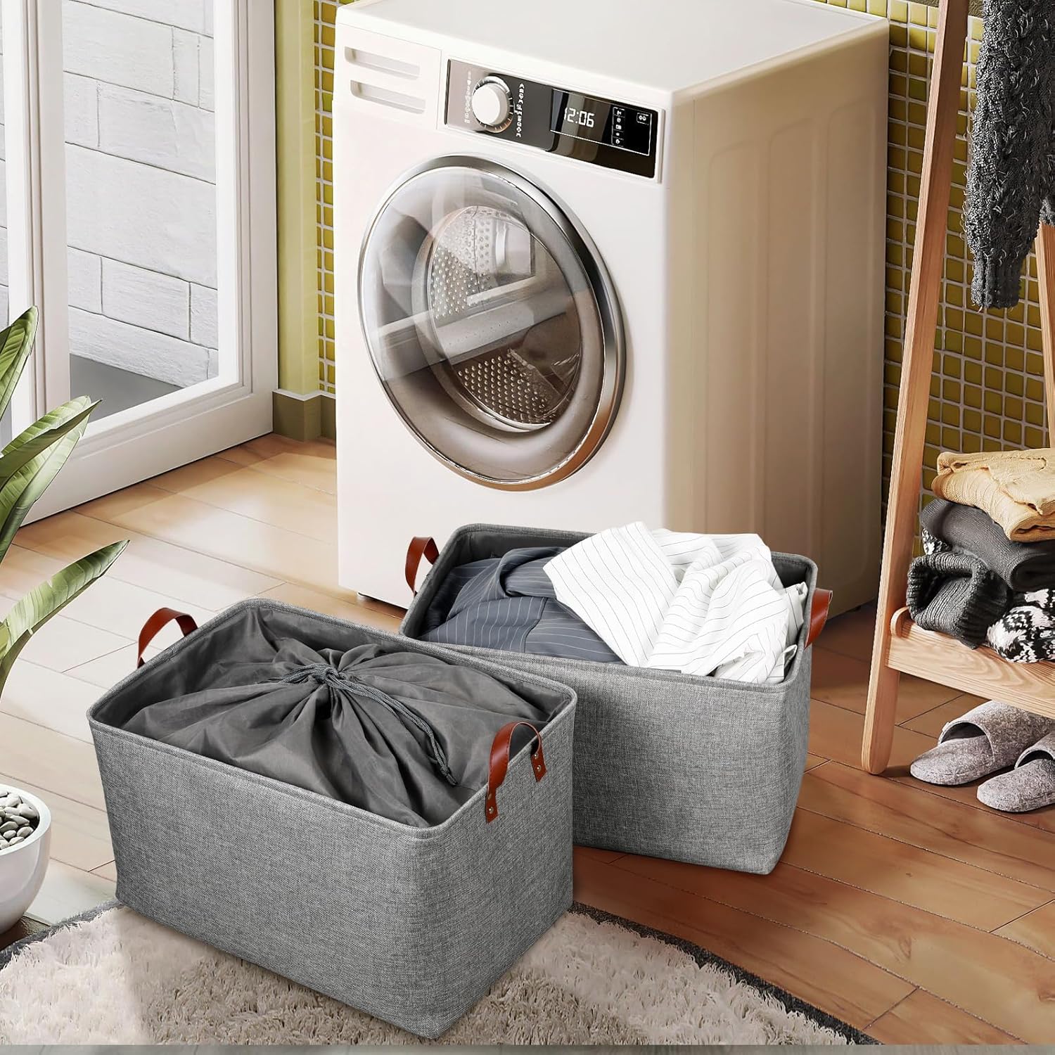 - 【Lidded & Foldable Design】This Large basket for organizing equipped with a drawstring cover, can effectively keep items clean. And with a foldable design enabling effortless storage when not in use. Also, it is easy to clean and care. Just need to wipe with a damp sponge or cloth.