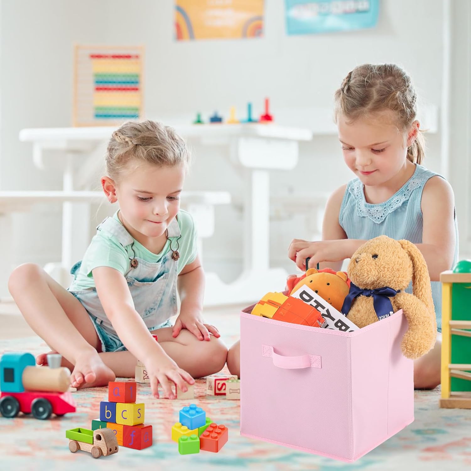Stero 13x13x13 Inch Fabric Storage Bins 6 Pack Fun Colored Durable Storage Cubes with Handles Foldable Cube Baskets for Home, Kids Room, Closet and Toys Organization Pink