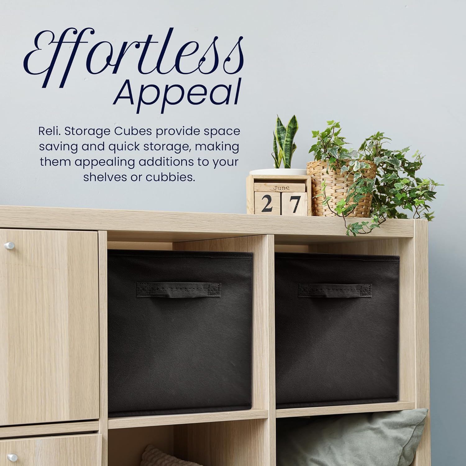 Reli. 11 Inch Cube Storage Bins (12 Pack) | Cube Organizer Bins | 11x11 Fabric Storage Boxes | Collapsible, Foldable Fabric Cubby Box (Square) | Bedroom, Office, Home Organization