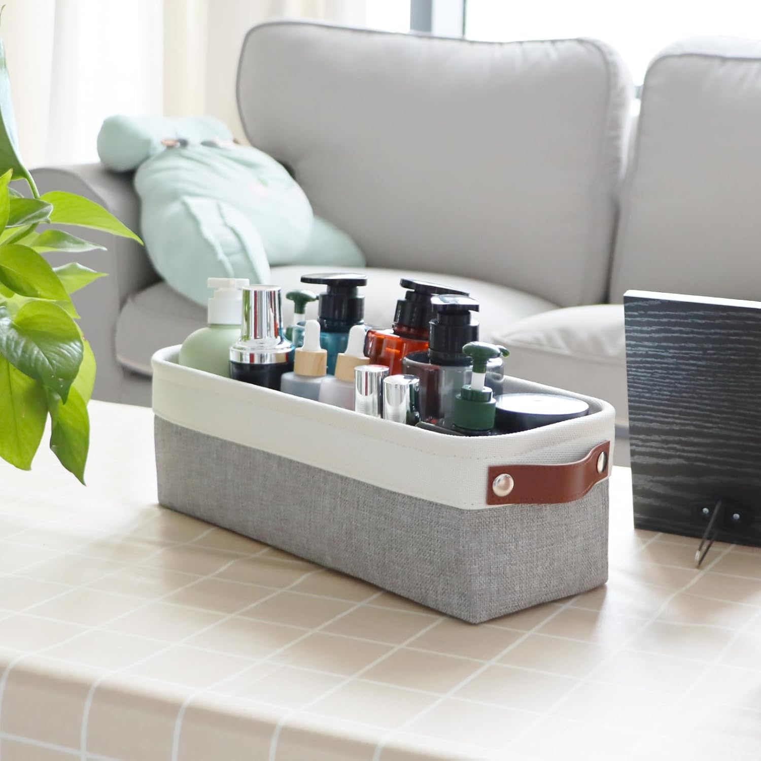 Univivi 4PC Small Fabric Storage Bins,15x6x5 inch Long Narrow Storage Baskets with PU Handles for Closet,Cabinet,Countertop Organizing Small Items (Gray,15x6x5 inch)