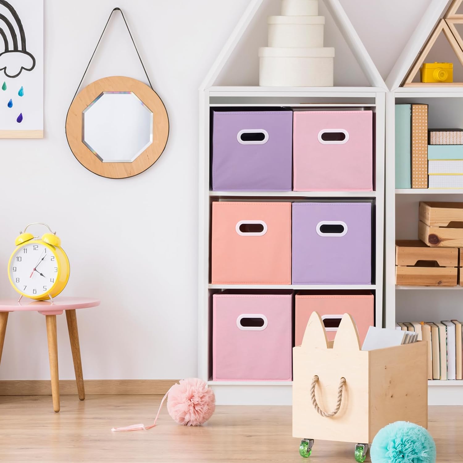 - Wide Range of Uses: Colorful storage boxes are widely used in playrooms, children's rooms, storage rooms, laundry areas, etc., and can also be placed on shelves, kitchen walls, floors, desks, etc.; Various things can be put in easily, whether they are paintings, toys, books, clothes, shoes, sheets, or quilts, making your room look neat and clean.They not only provide the storage space but also enriching the home decoration.