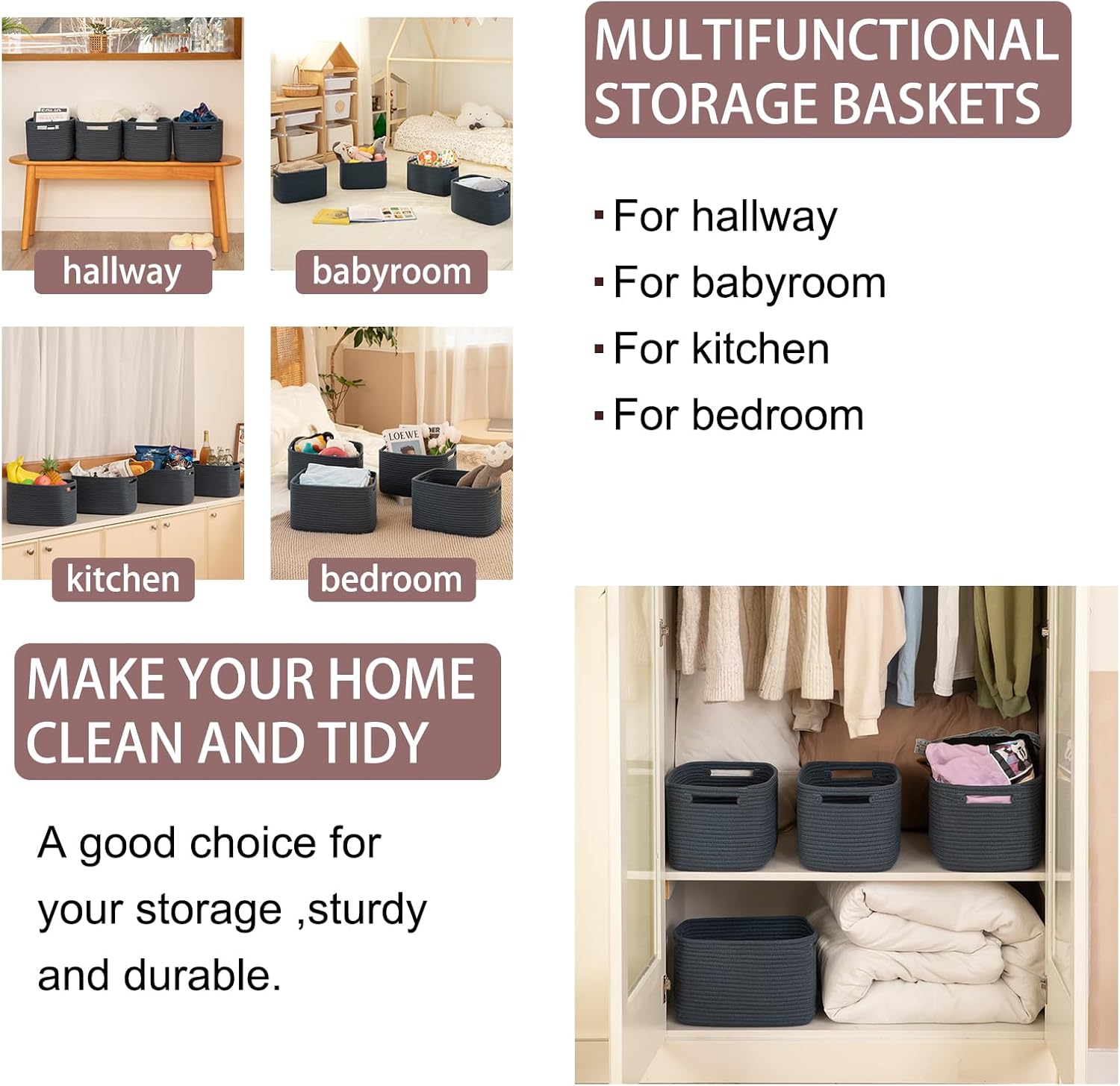 - 100% Cotton Rope Storage Baskets:OIAHOMY soft woven storage baskets are made of high-quality natural cotton, chemical free and safe for kids and pets. It will not scratch your furniture and floor, durable and firm