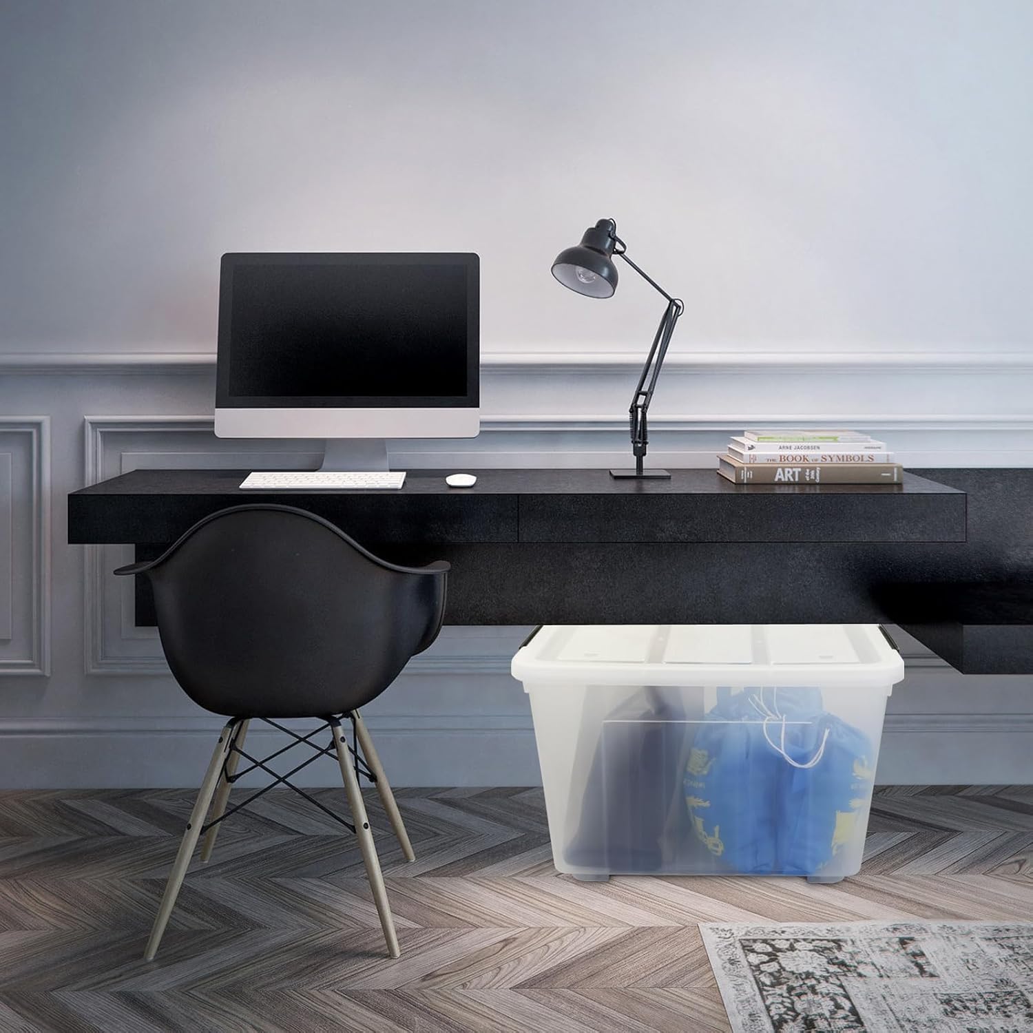 - This large container is suitable for storage in garages, attics, bedrooms, workshops, basements, sheds to keep the space tidy