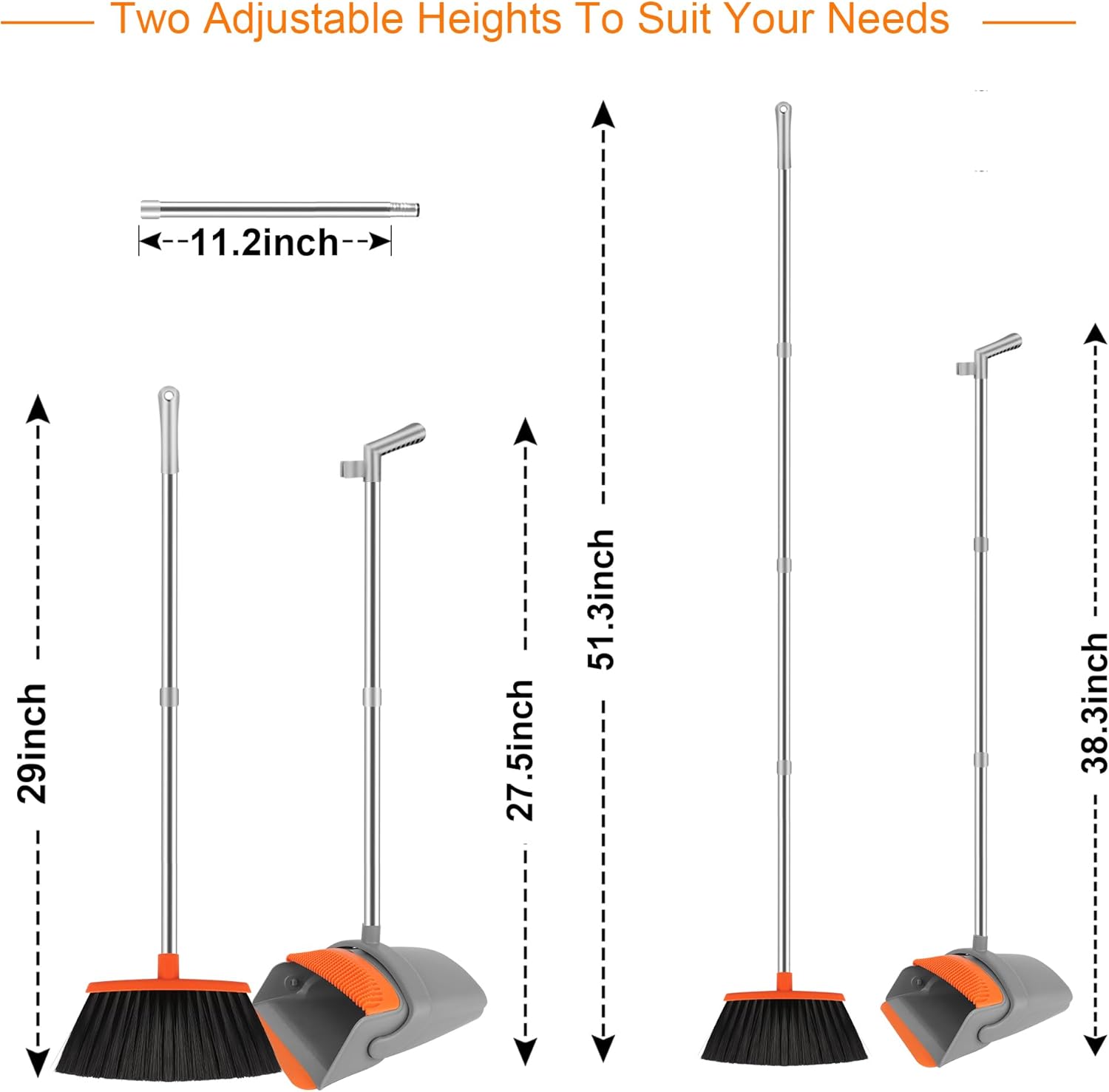 Broom and Dustpan Set for Home, Broom with Dustpan Combo Set, 51" Long Handle Dust Pan Set for Household