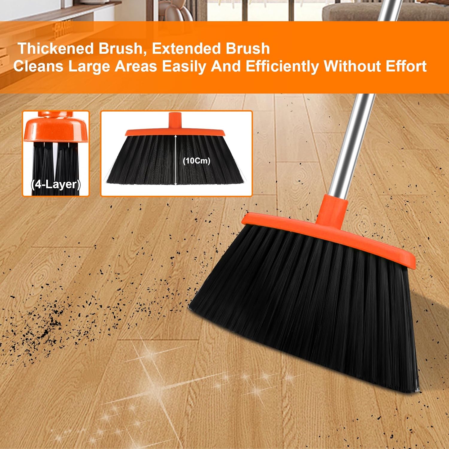 • [Improved Broom and Dustpan Combo Set] Upgrade your cleaning routine with this enhanced combo, a flexible and valuable addition to your home cleaning tools. Featuring a sturdy stainless steel handle and a roomy dustpan, this set is perfect for efficient cleaning. The soft rubber lip forms a tight seal between the floor and dustpan, ensuring a mess-free experience. Sweep confidently with this broom and dustpan set, designed to eliminate ash leakage.