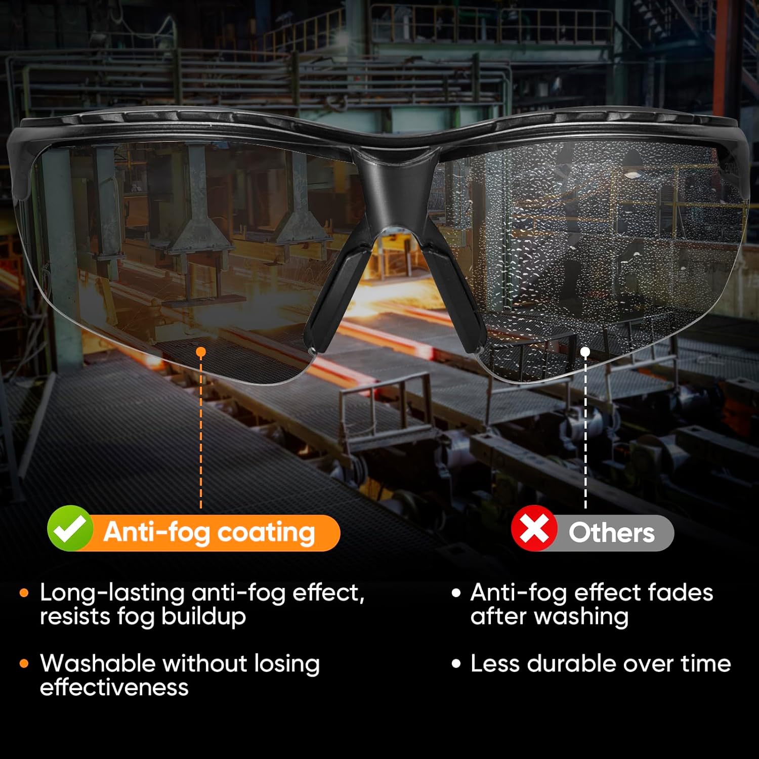 - [ANTI-FOG & UV PROTECTION] Equipped with scratch-resistant, anti-fog properties, these safety goggles utilize professional anti-fog coatings, maintaining clarity in diverse environments. Moreover, they effectively block 99.9% of harmful UV rays