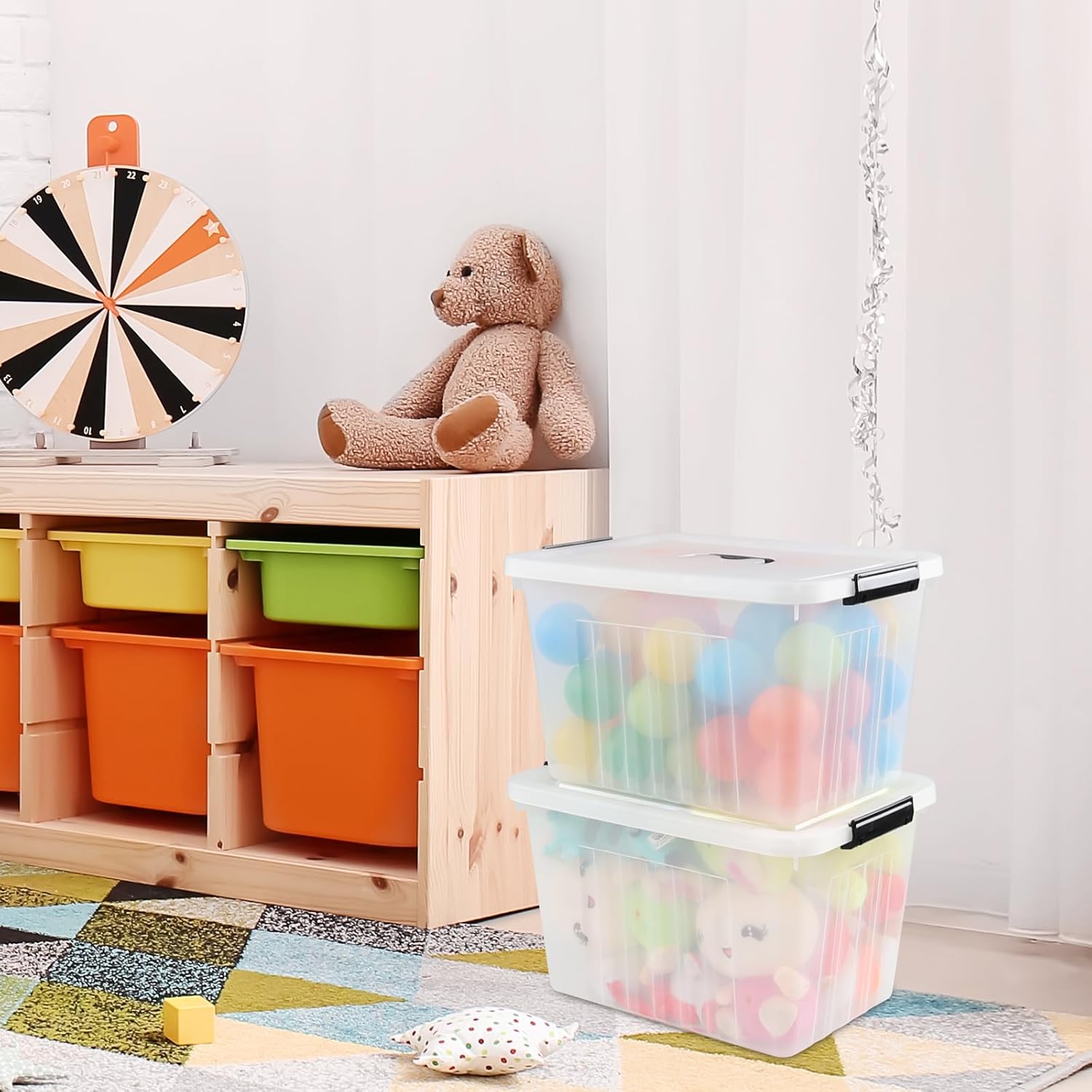 Bringer 4-Pack Clear Plastic Latching Storage Box, 18 L Storage Bin with Handle