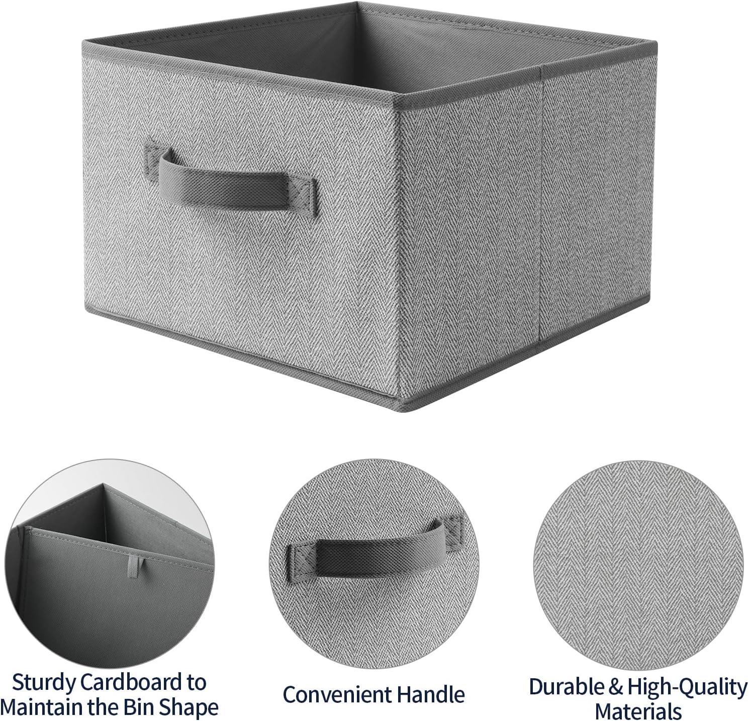 Storage Baskets, 11-Inch Woven Fabric Bins, Storage Cubes with Reinforced Handles, Organizer Bins for Closet Shelves, Foldable, for Toys, Clothes, Natural Beige (3PCS/Grey-11*11*7.8inch)