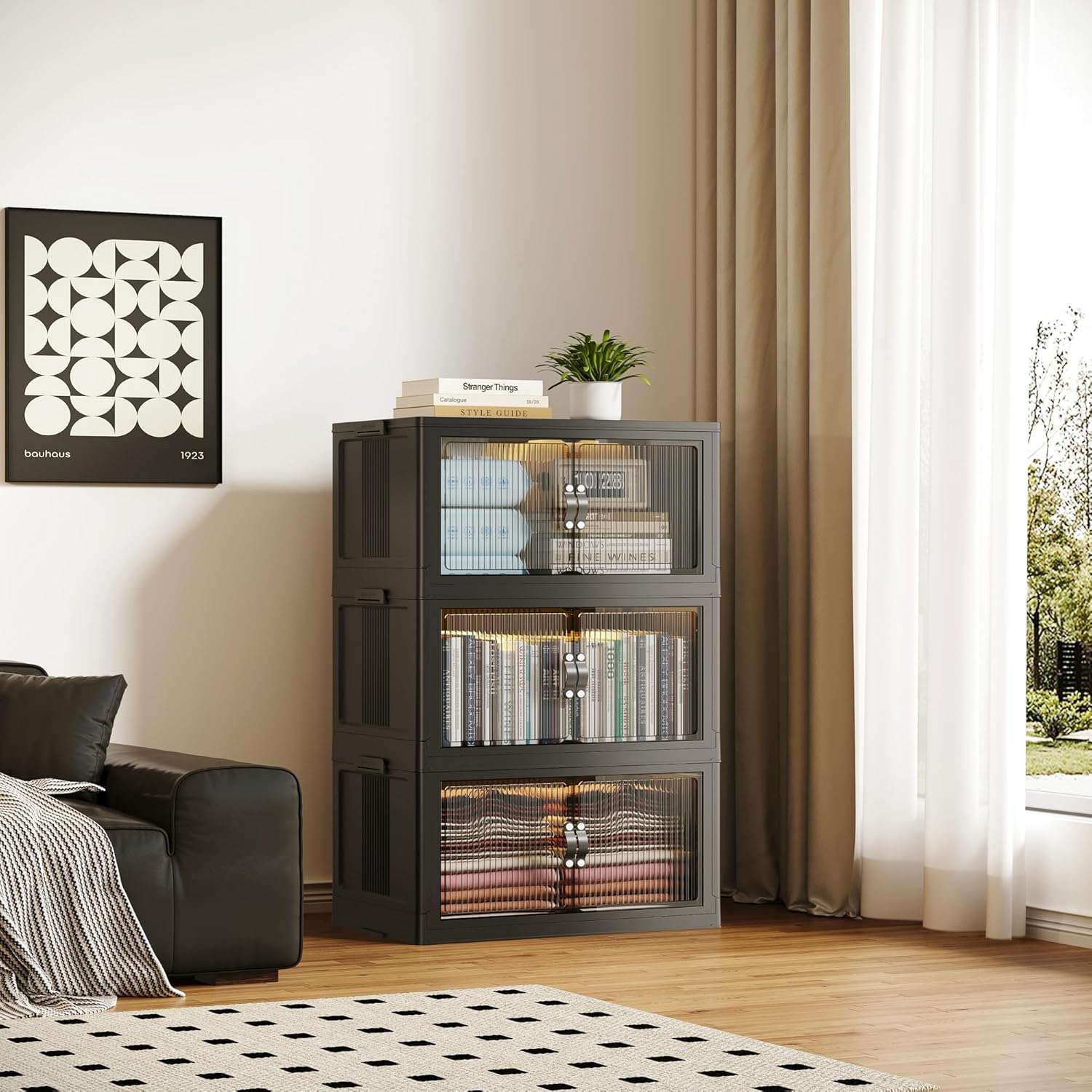 - ♥【Very easy, stackable】 - No tools are required for installation. The notches on the stackable storage bins are designed to make them more securely stacked without tipping over, and flip the snaps to stack them together. It can be easily folded away when not in use, saving space. This makes it ideal for use in small spaces.