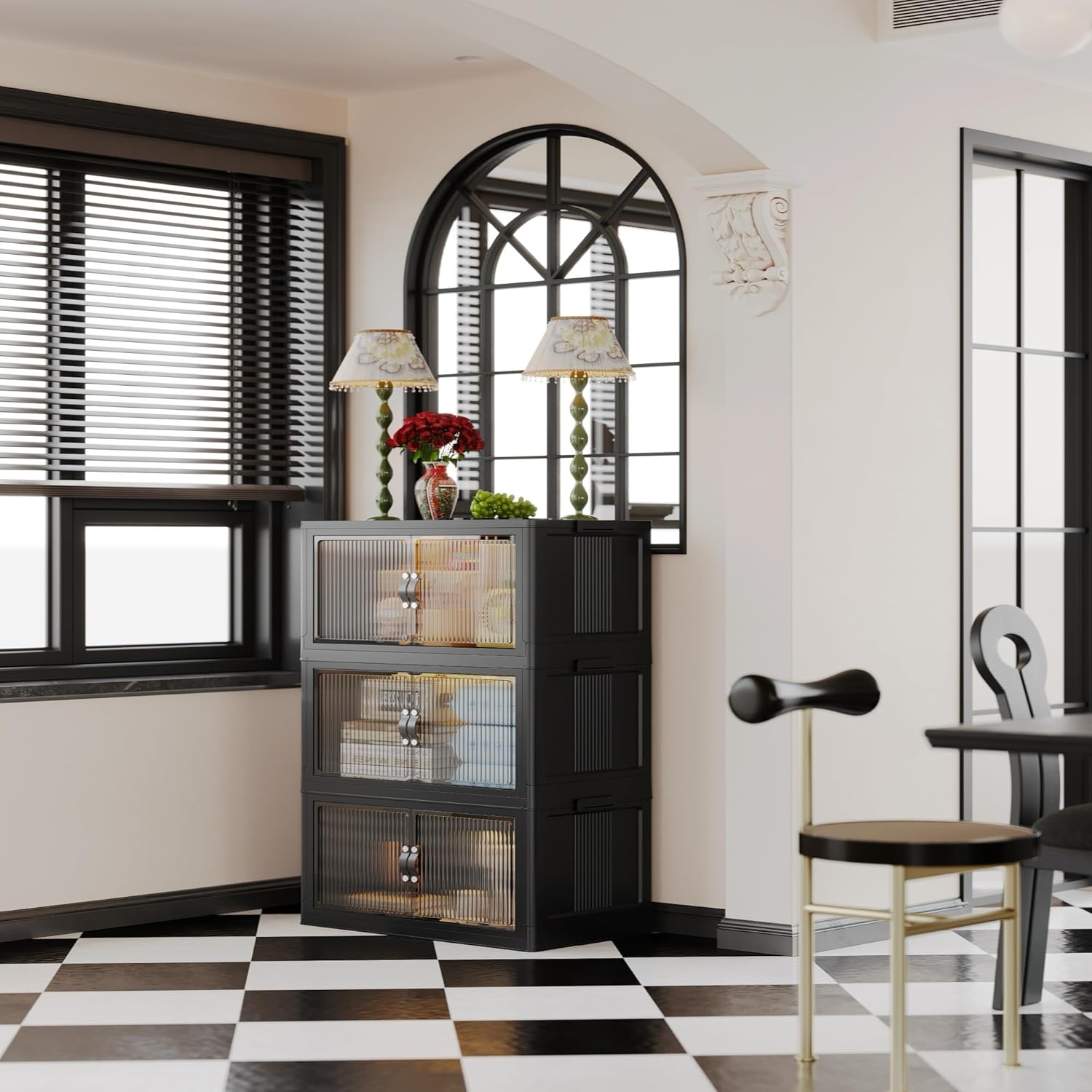 SAILUN 83Gal/335Qt Stackable Storage Bins Folding Collapsible Storage Bins with Lid, Closet Organizers and Storage, Black 26" W x 17" D x 43.7" H