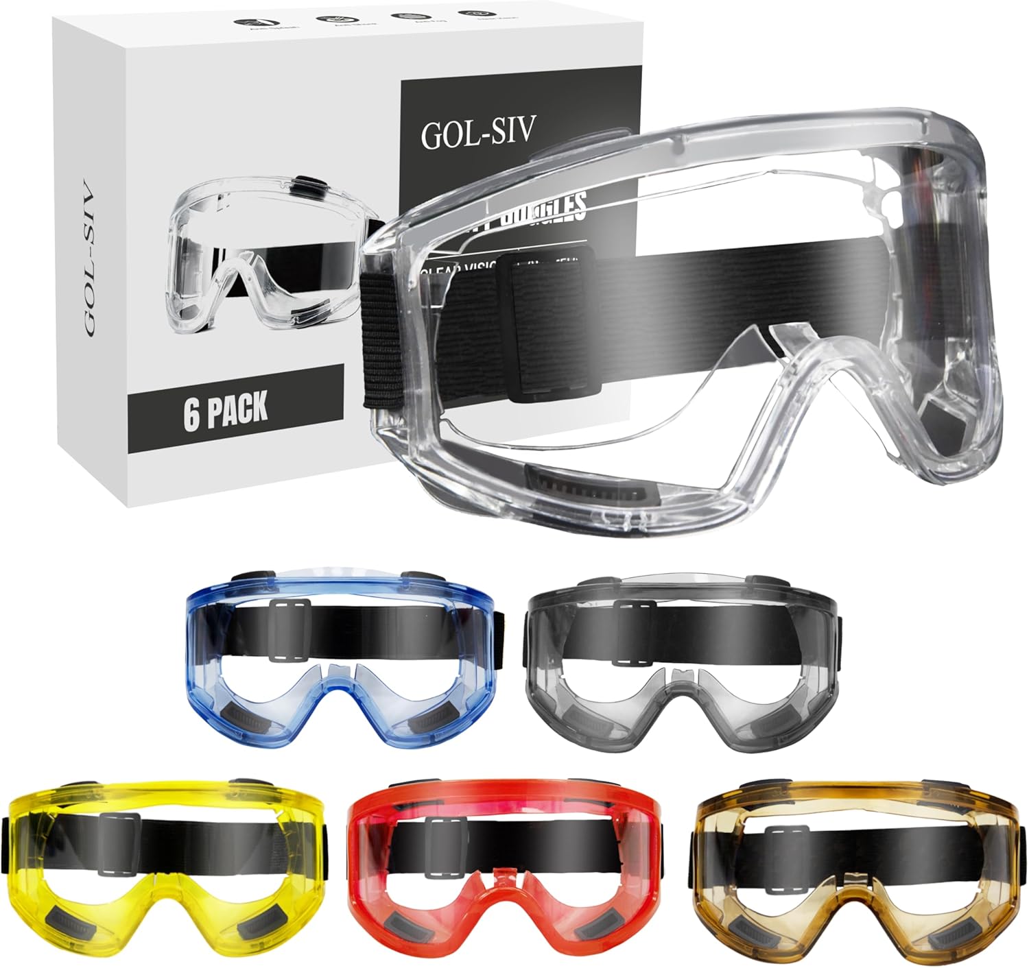 6 Pack Safety Goggles, ANSI Z87.1 Anti-Fog Lab Goggles, Adjustable Protective Eye Protection for Men