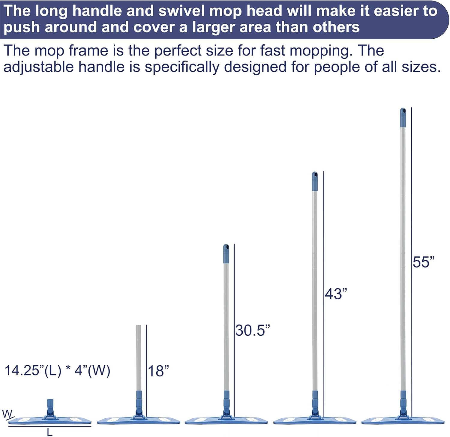 - Lightweight Mop for Easy Cleaning - The AMERWASH PLUS hardwood floor mop boasts a 360° swivel mop head, effortlessly cleaning around table legs, stairs, corners, and tight spaces. Its adjustable steel handle extends up to 56 inches, allowing easy access under furniture and couches, reducing strain on your body and preventing back pain and muscle soreness.