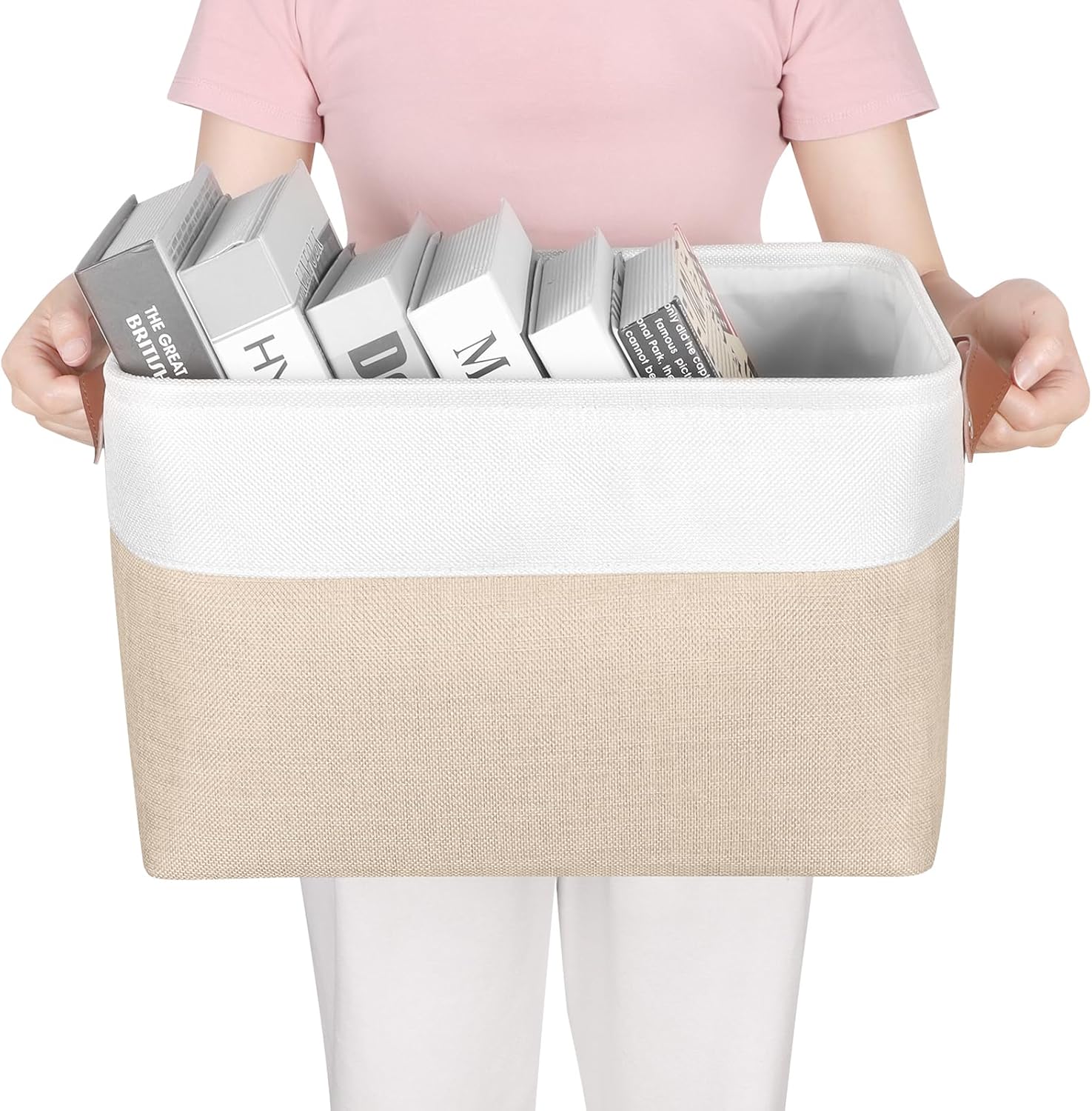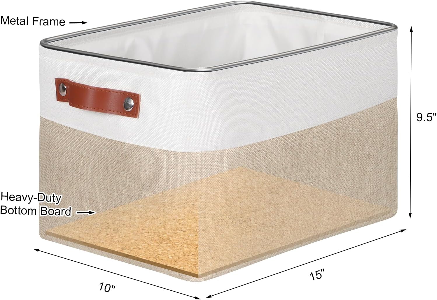 - 【High-Quality Materials】- 15 inch fabric storage basket made of quality linen fabric , no strange smell,and the thickened bottom makes it more durable. Moreover, storage box use high-quality polyester lining, can be easily cleaned by hand or wipe the inside with a wet sponge.