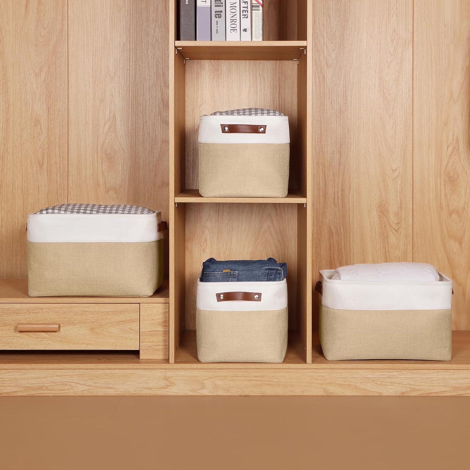 Univivi 15 inch Storage Baskets for Shelves with Handles Hard Bottom Closet Organizer Fabric Bins Large Organizer Basket for Closet Organizing (Khaki- 4 Pack )