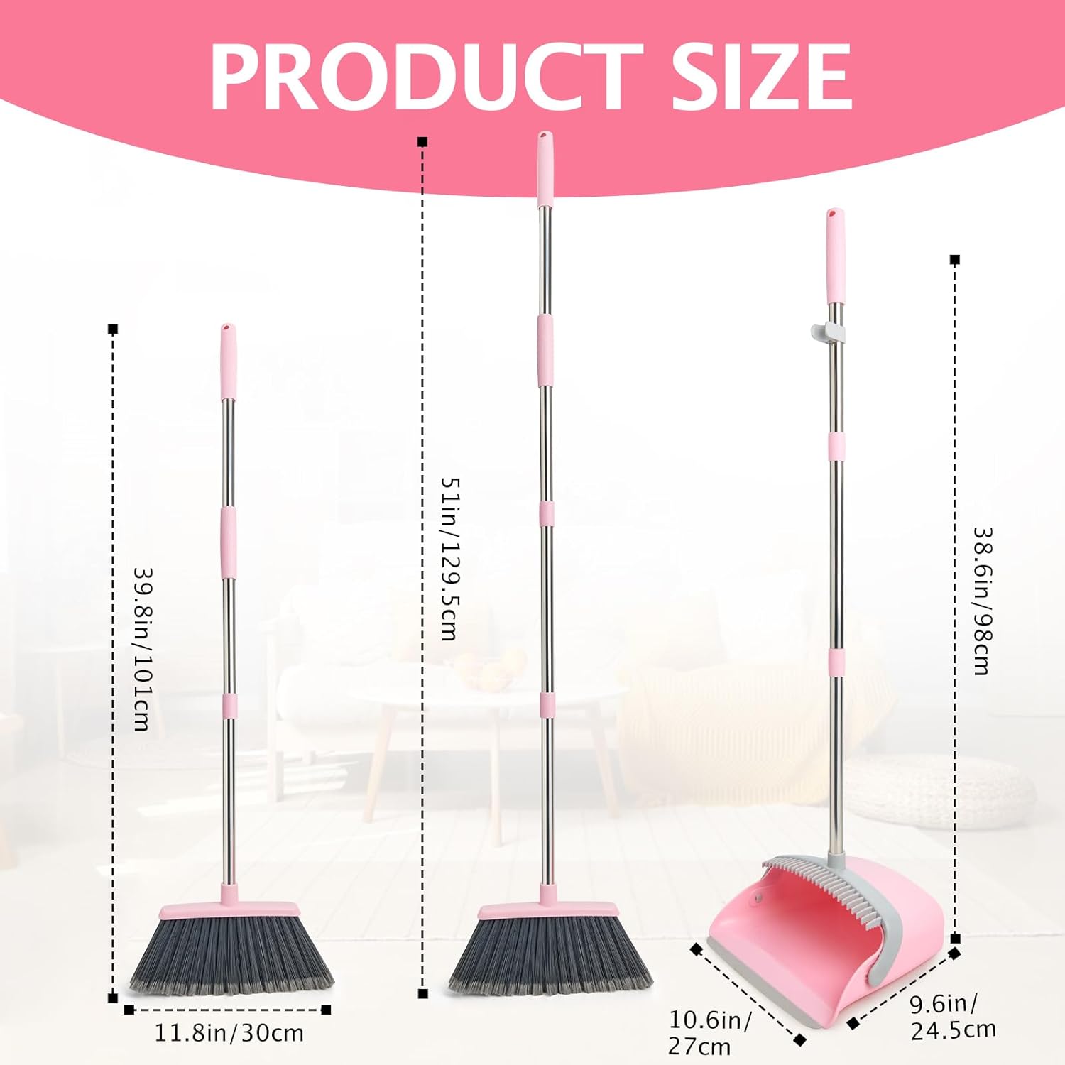 • 【Extendable Handle】The optional extension pole makes the broom length from 39.8 inches to 51 inches, the dustpan length is 38.6 inches. You can choose the appropriate length according to your height, making it easy to clean while standing upright.