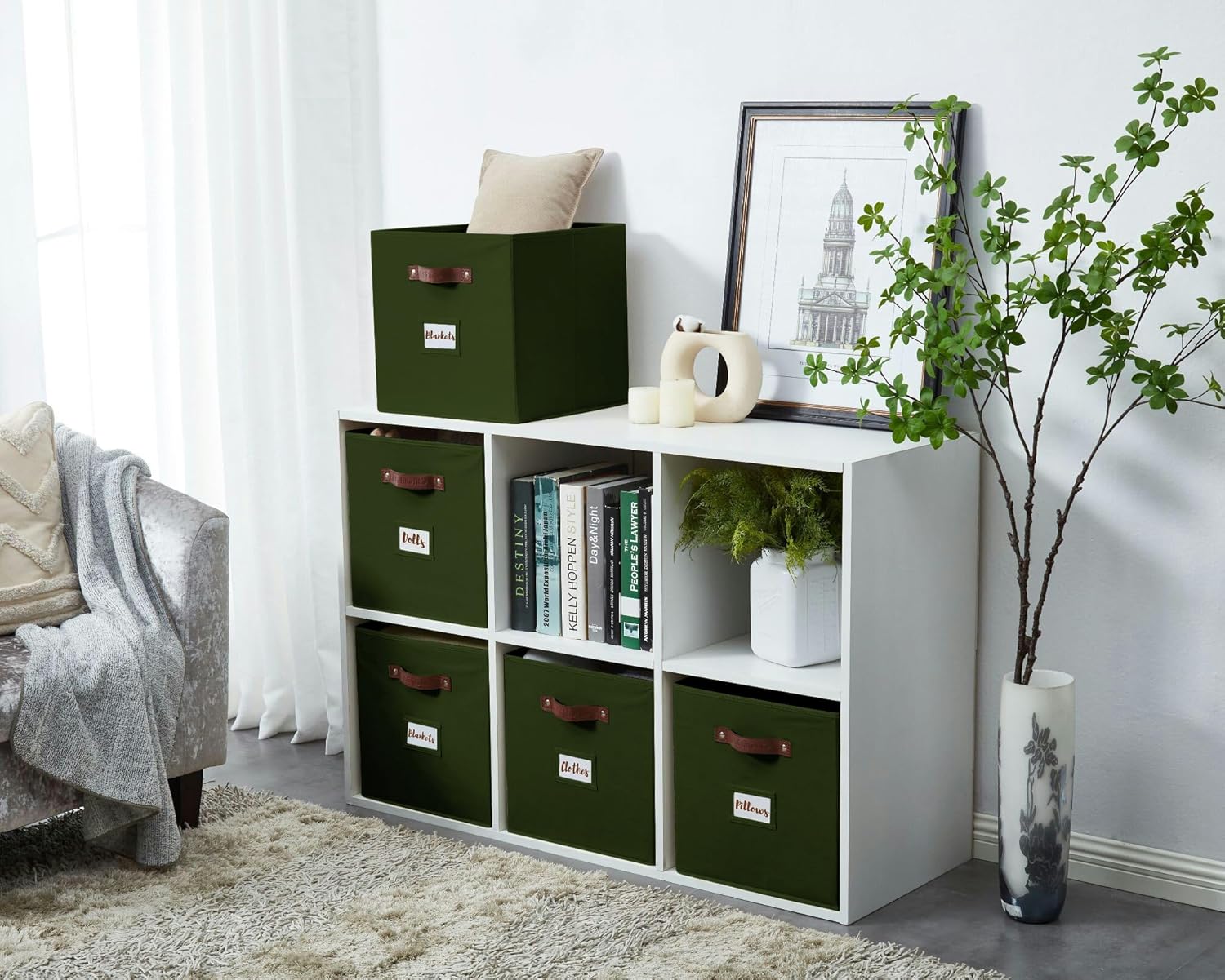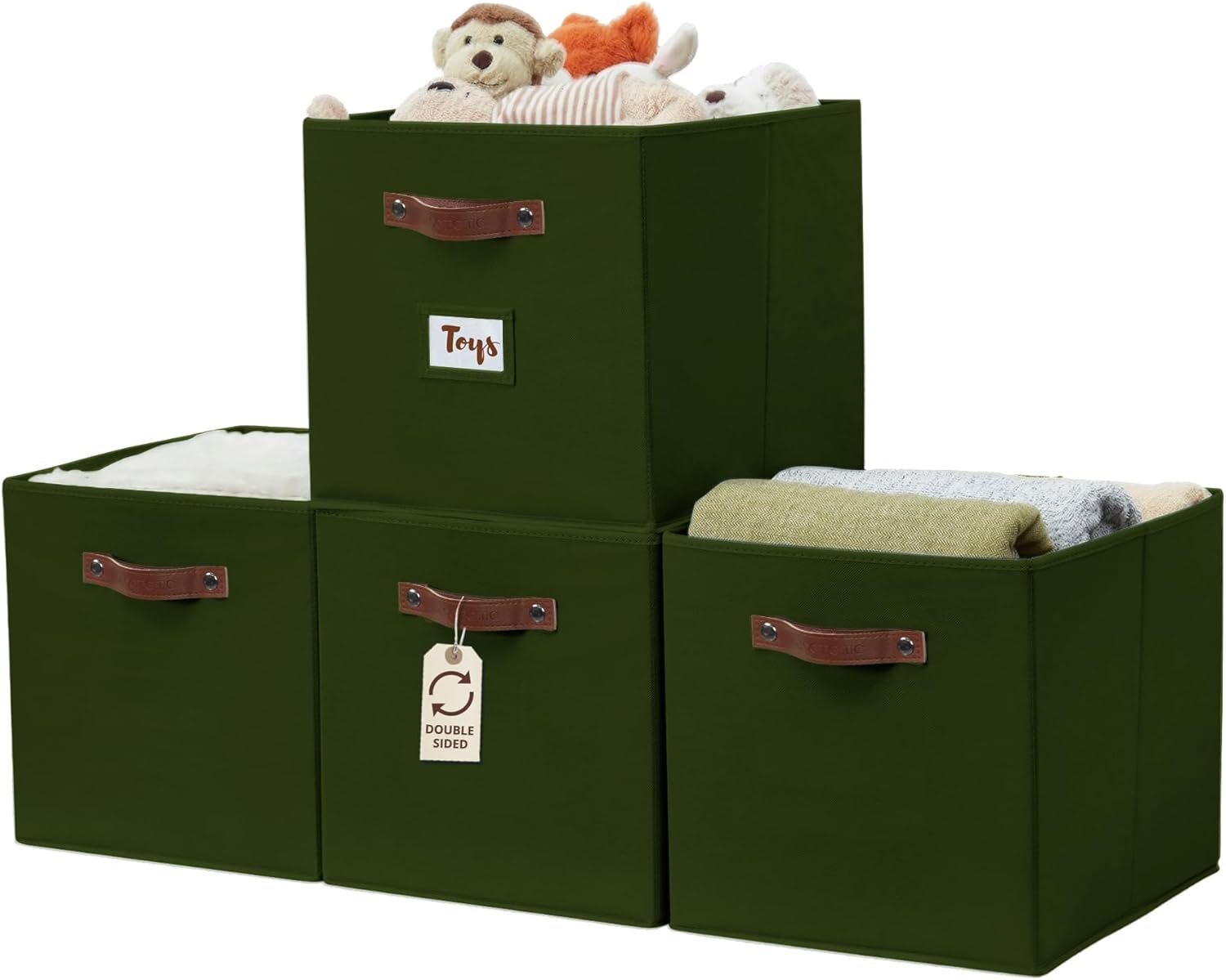 DECOMOMO Storage Baskets, 13x15x13 Storage Cube Bins with Labels for Organizing Shelves Kallax (Kallax / 4pcs, Olive Green)