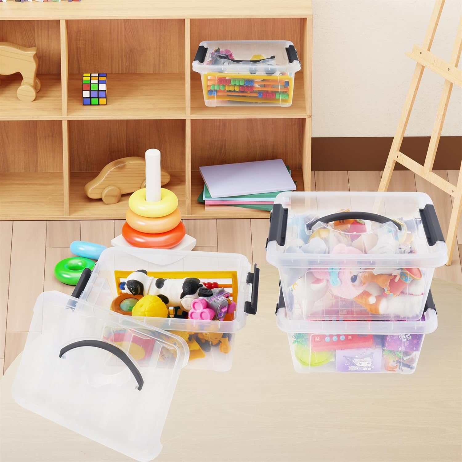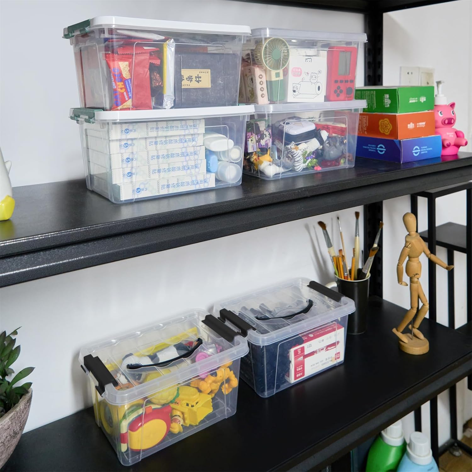 - Include 6-Pack plastic storage organizer latching box/bins
