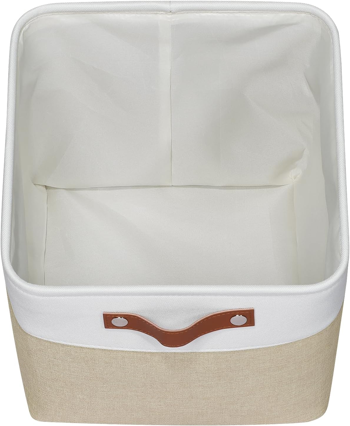 Univivi 12x12 Storage Cube Bins set of 4 Cube Organizer with Handles|Hard Bottom Fabric Closet Storage Organizer Baskets for Shelves (Khaki)